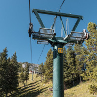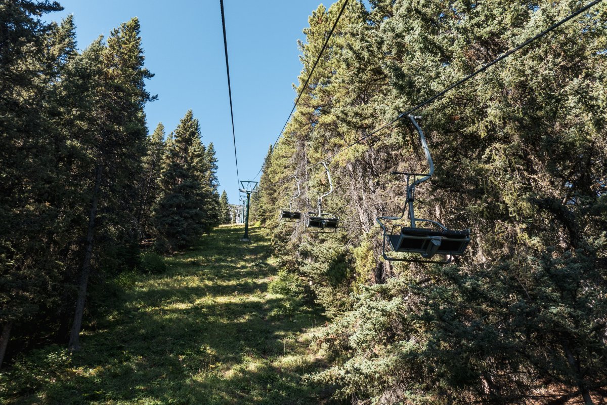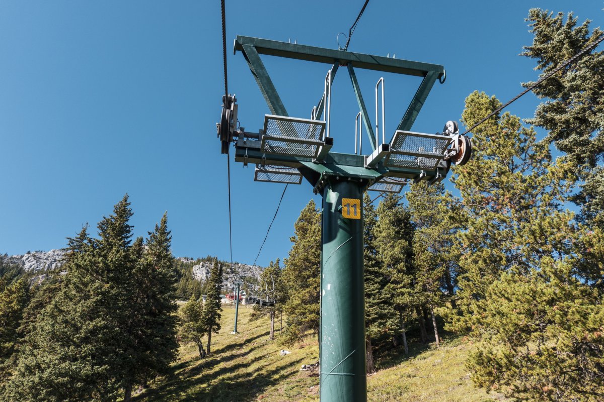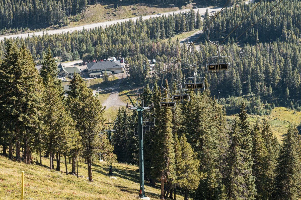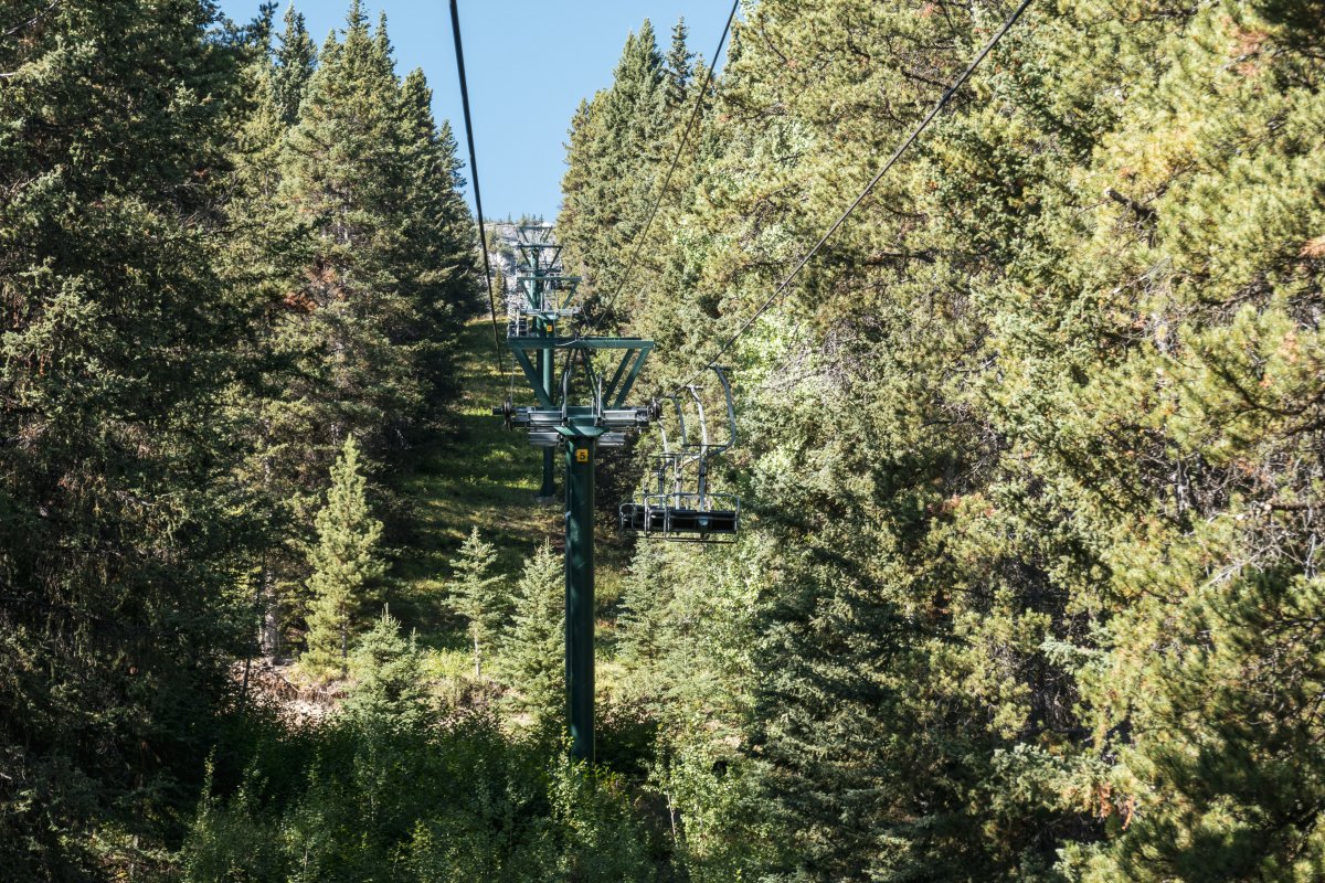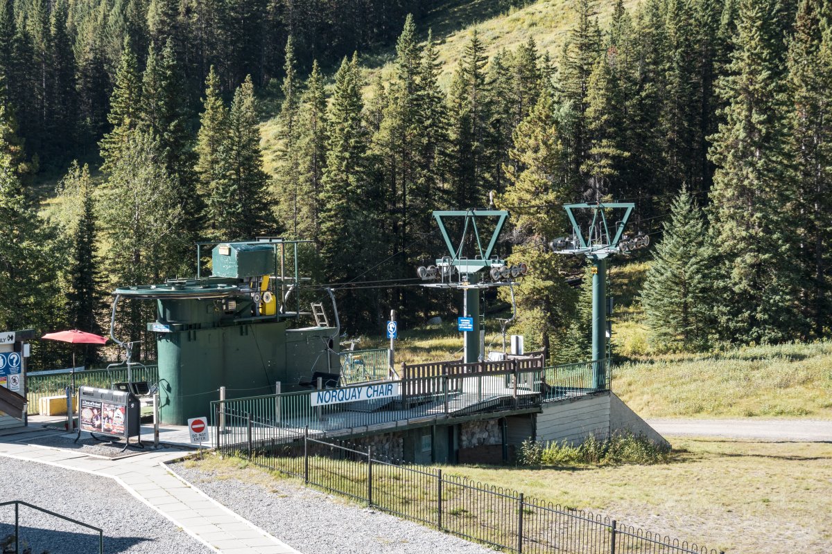 Eine überaus kuriose Gruppenumlaufsesselbahn führt zum höchsten Punkt des Skigebiets Mount Norquay, von dem aus sich ein fulminanter Blick auf Banff und die kanadischen Rockies bietet.