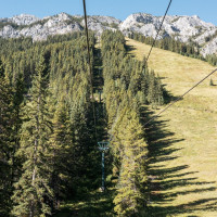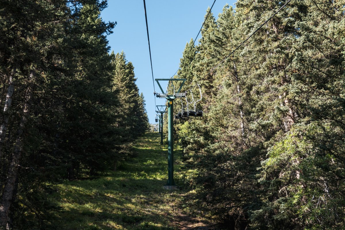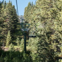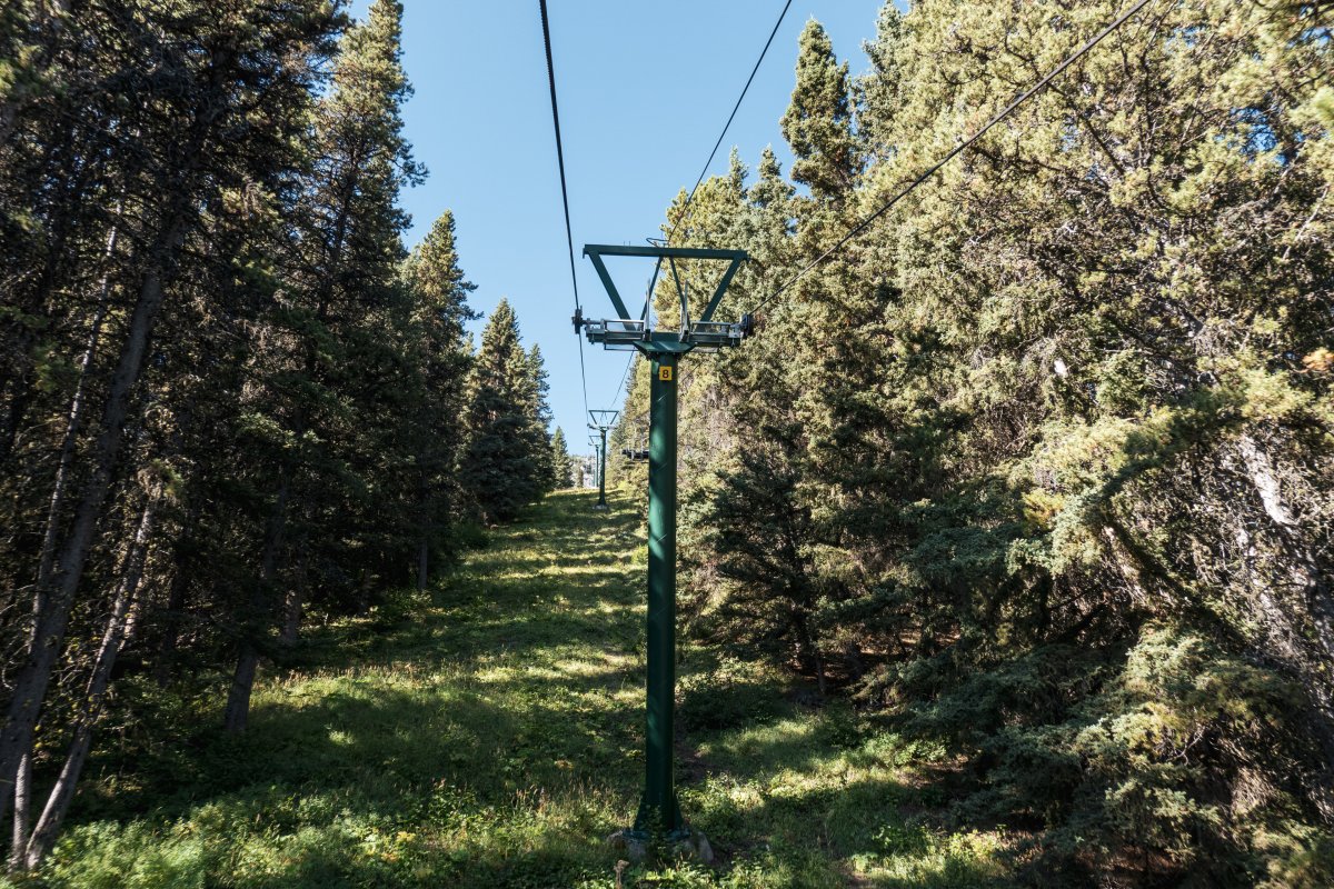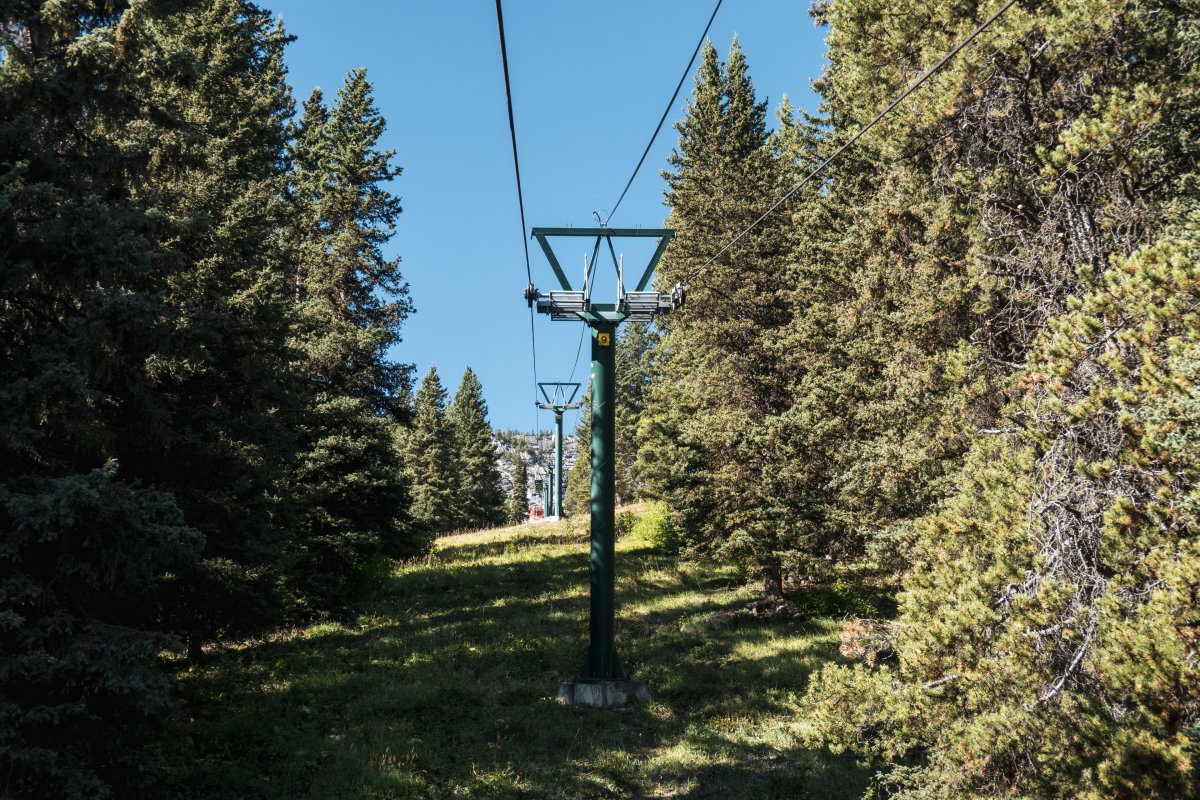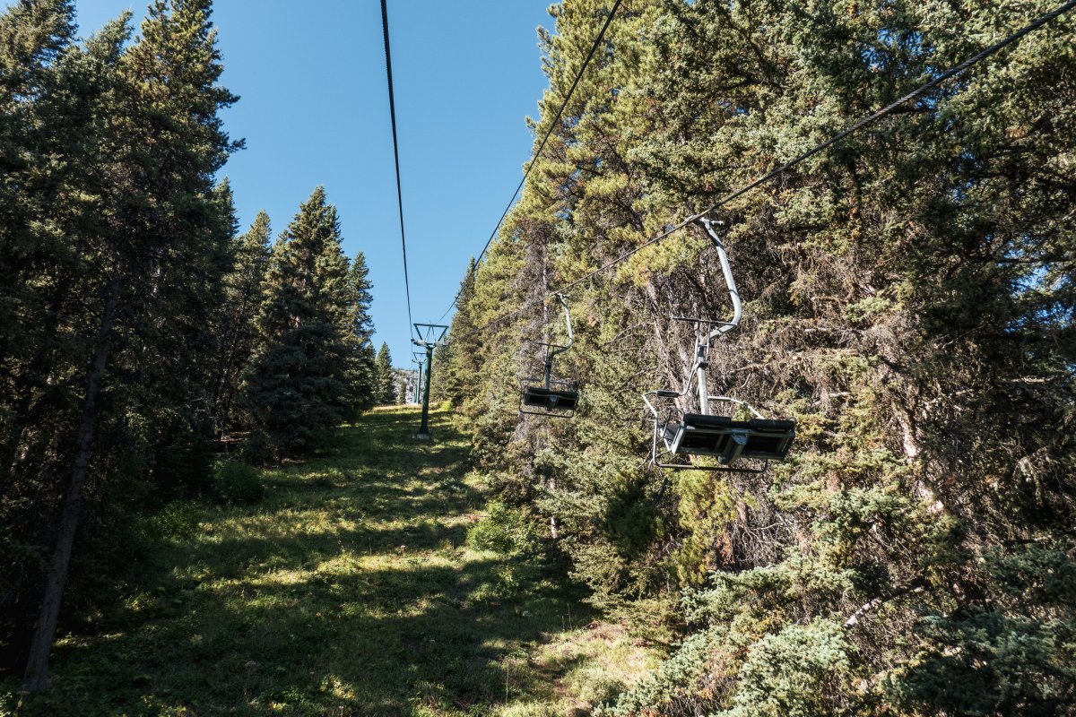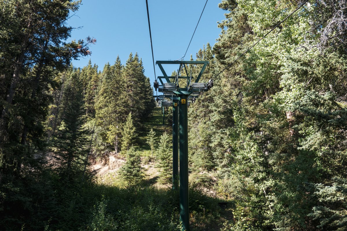 Eine überaus kuriose Gruppenumlaufsesselbahn führt zum höchsten Punkt des Skigebiets Mount Norquay, von dem aus sich ein fulminanter Blick auf Banff und die kanadischen Rockies bietet.