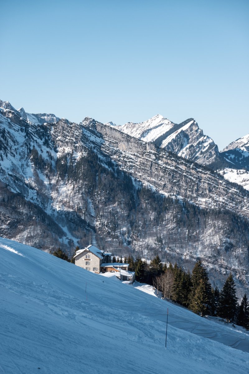 Ein monumentaler Schlepplift von Brändle aus den 1950er Jahren erschliesst mit einem kurzen Übungslift von Bartholet das kleine, aber anspruchsvolle Skigebiet Schilt oberhalb von Mollis.