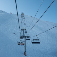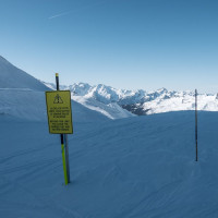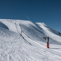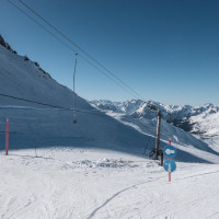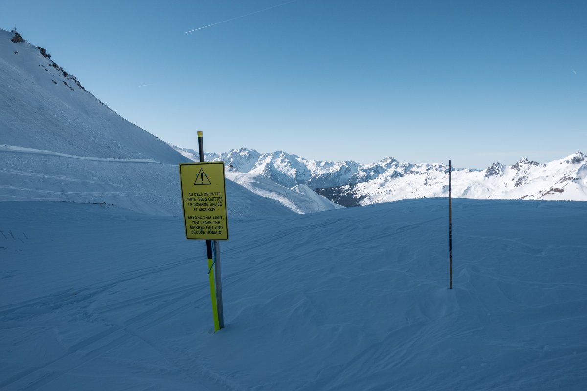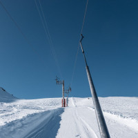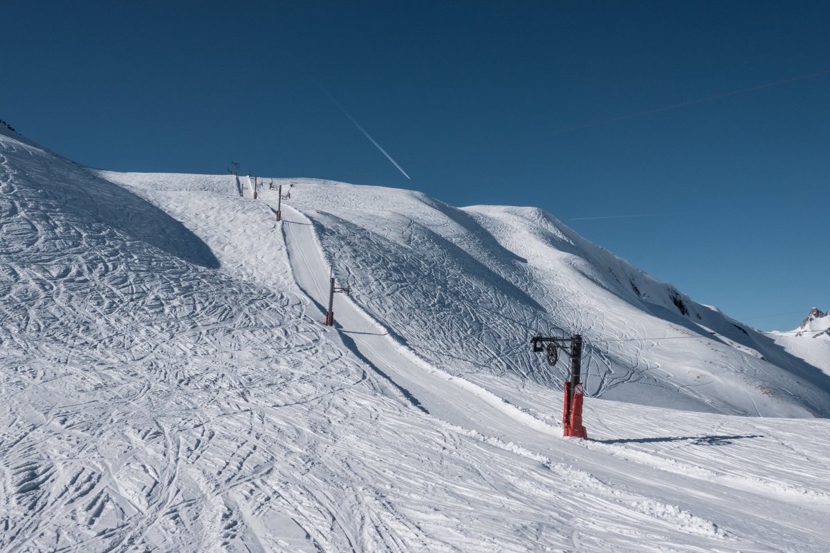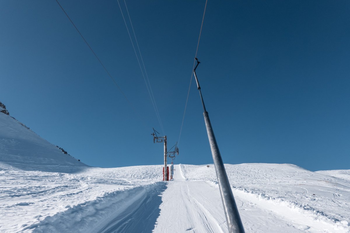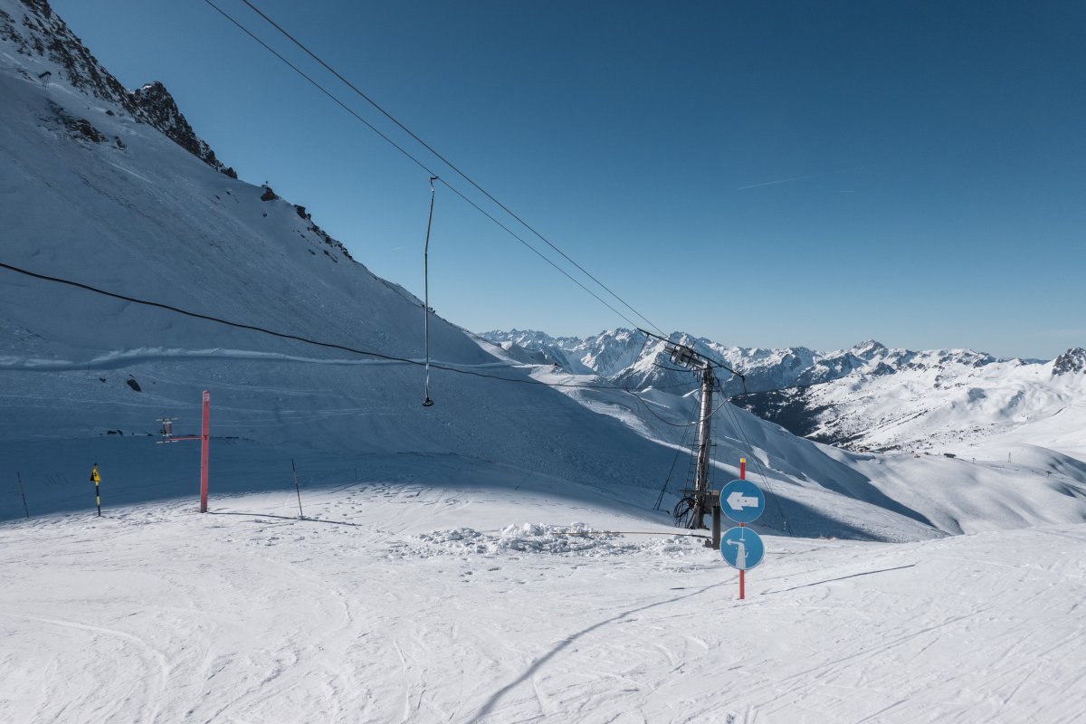 Abfahrtsroute an der Bergstation des Schlepplifts Riondet, Februar 2025