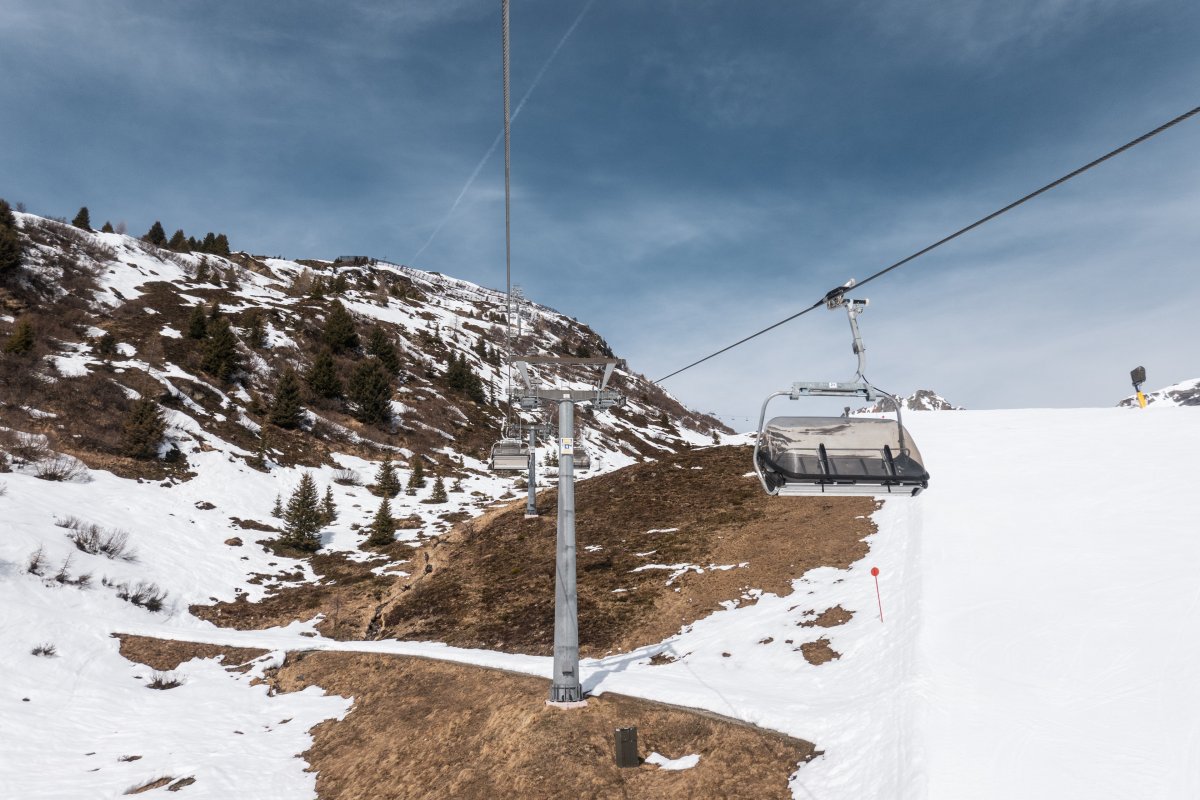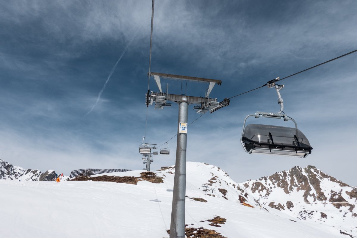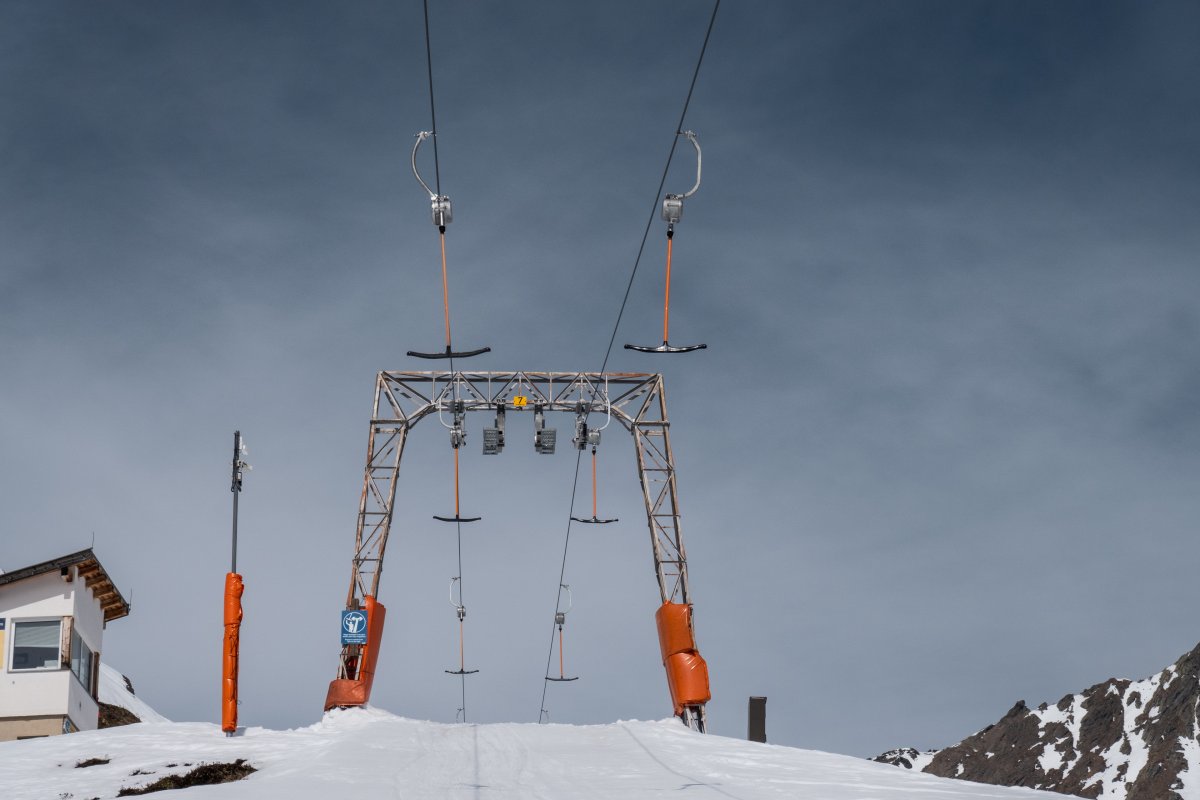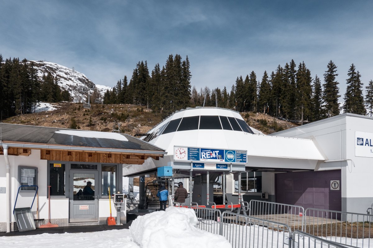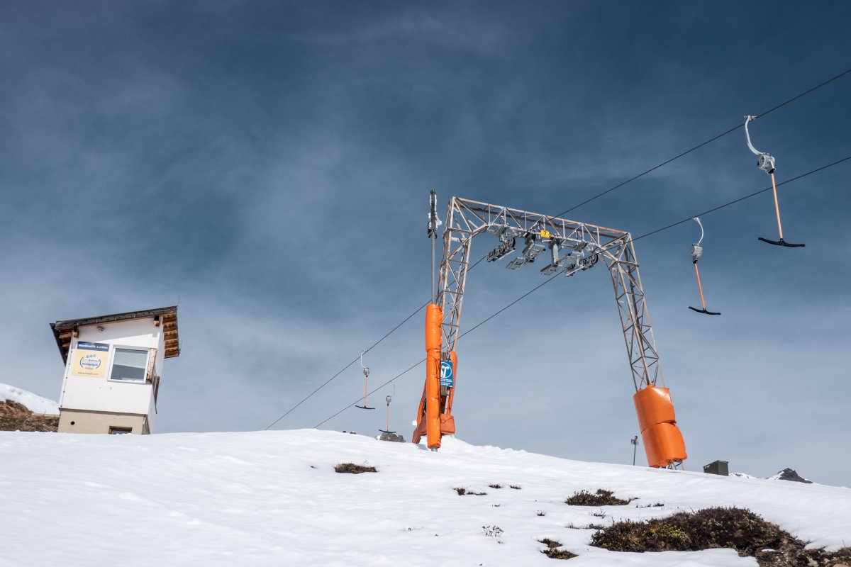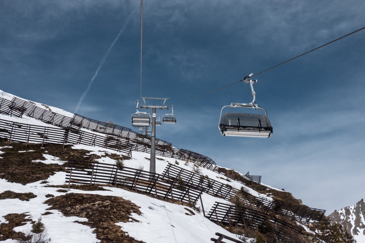 Zu Besuch im Skigebiet Kappl am drittletzten Betriebstag der von Doppelmayr konstruierten Diasbahn, die als Zubringer dient. Die Beschäftigungsanlagen erschliessen abwechslungsreiche Abfahrten auf eher untypische Art und Weise.