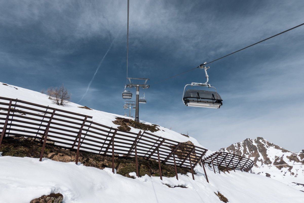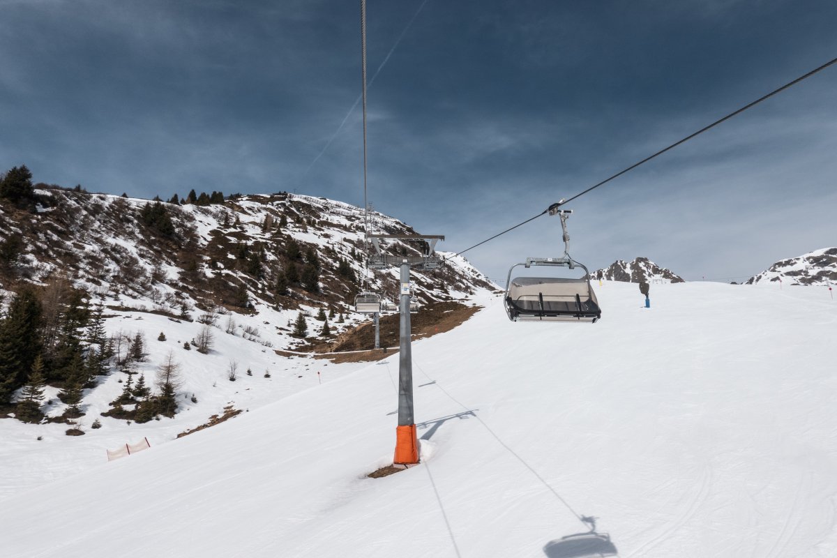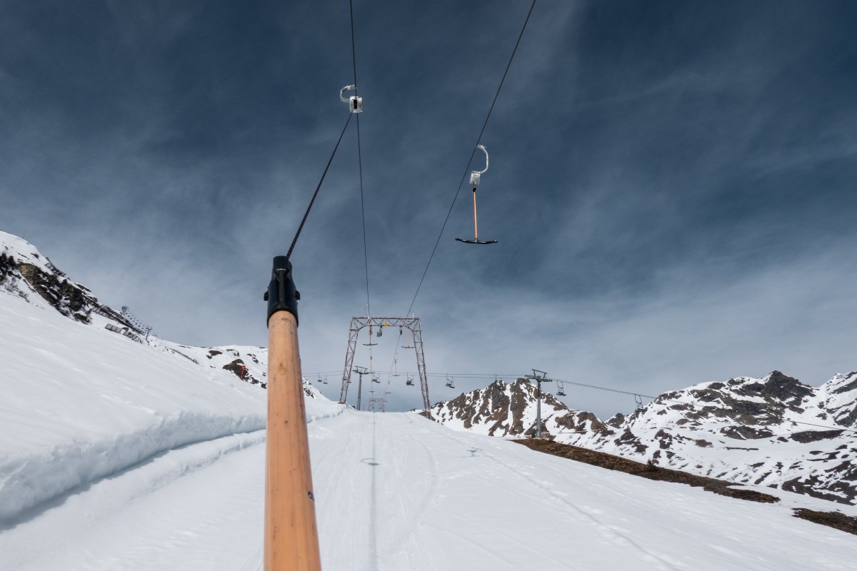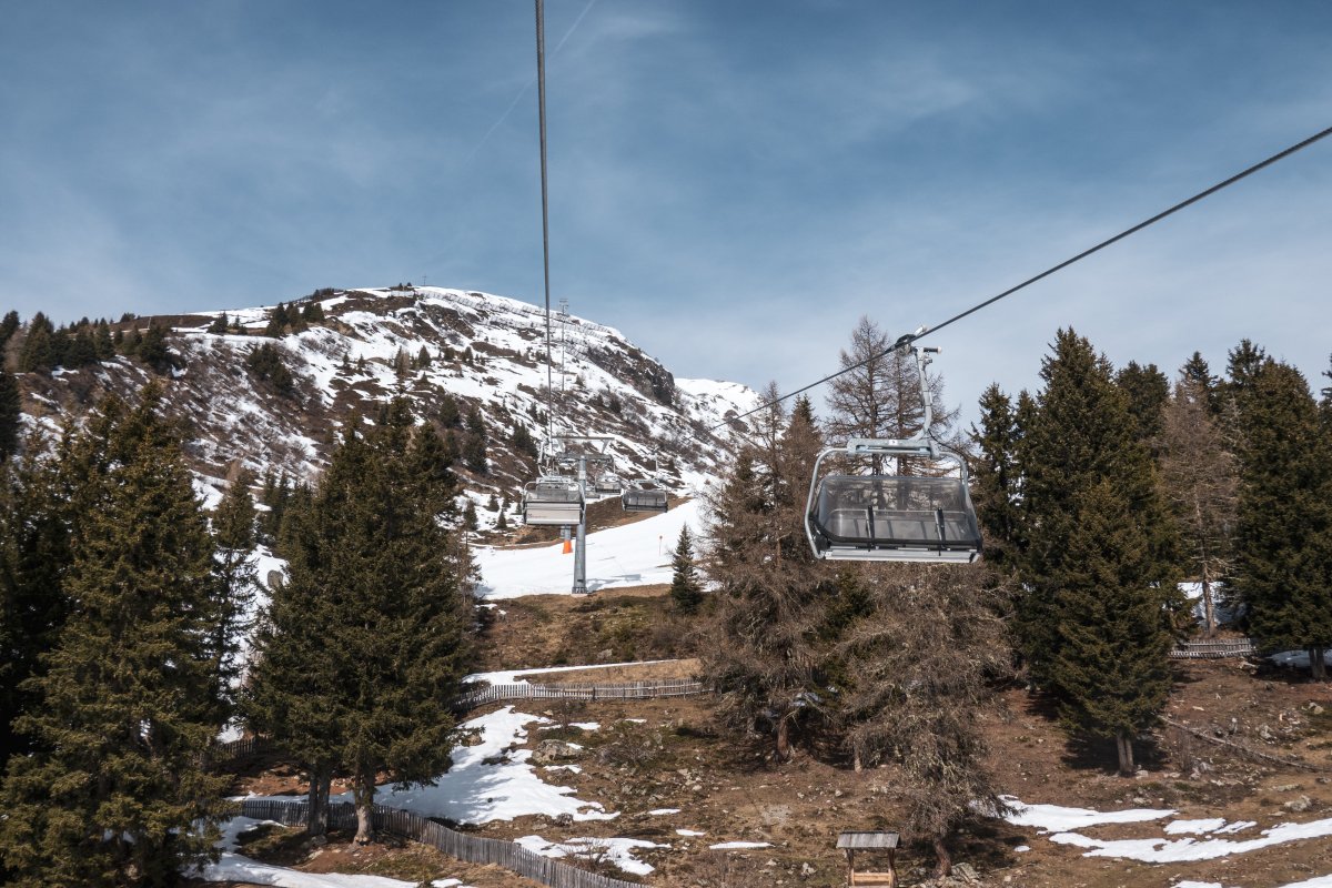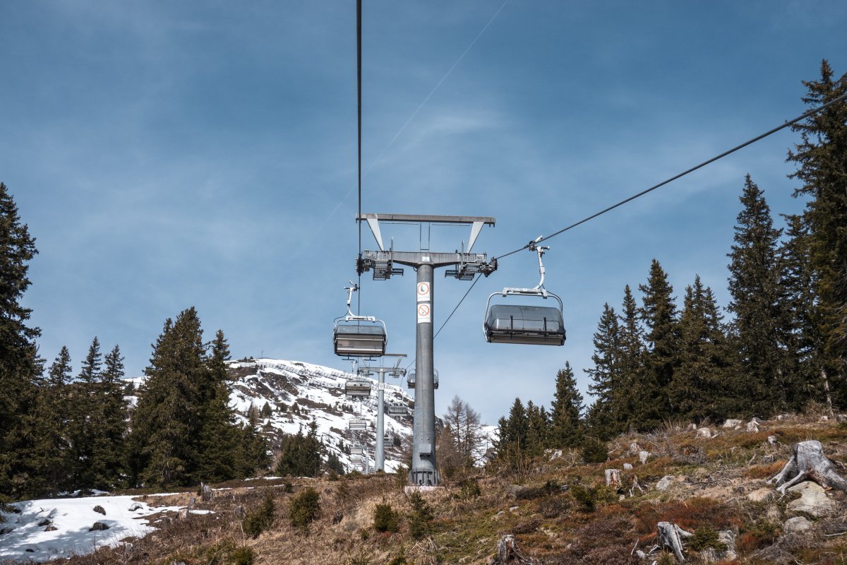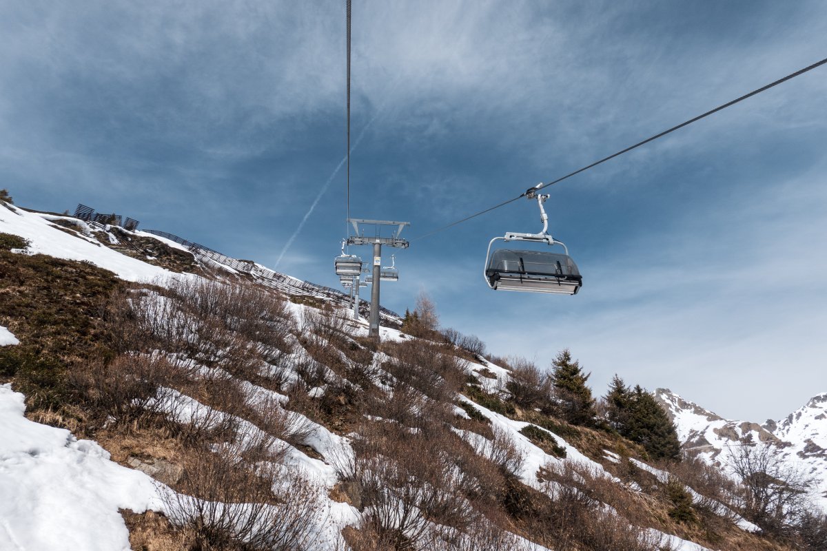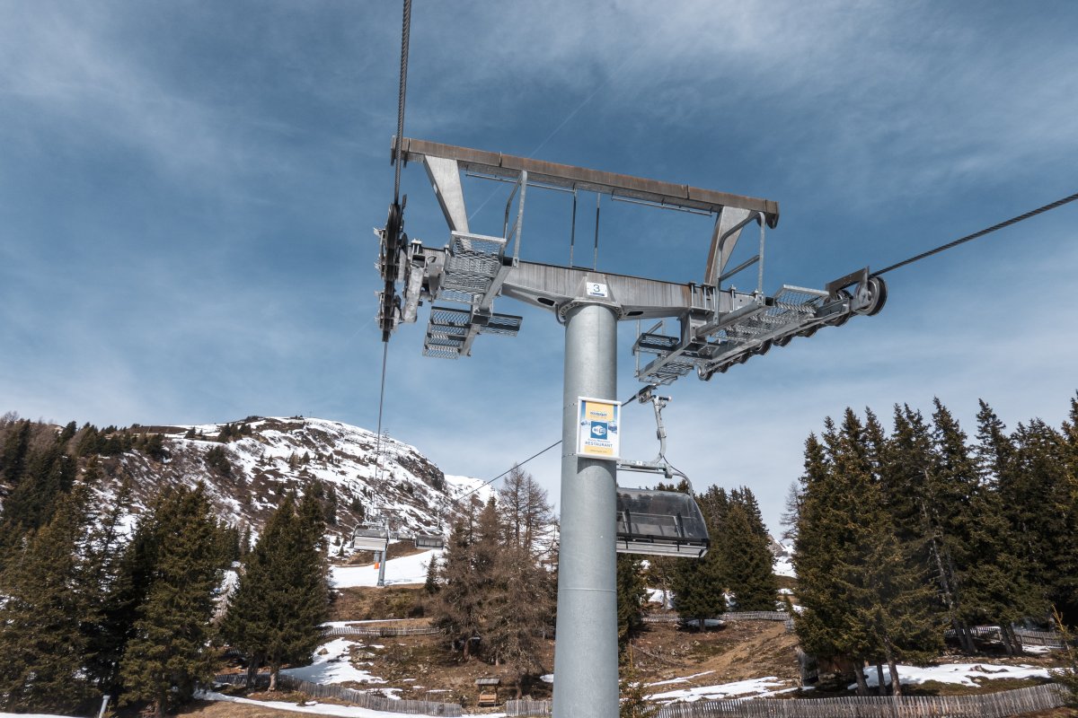 Zu Besuch im Skigebiet Kappl am drittletzten Betriebstag der von Doppelmayr konstruierten Diasbahn, die als Zubringer dient. Die Beschäftigungsanlagen erschliessen abwechslungsreiche Abfahrten auf eher untypische Art und Weise.