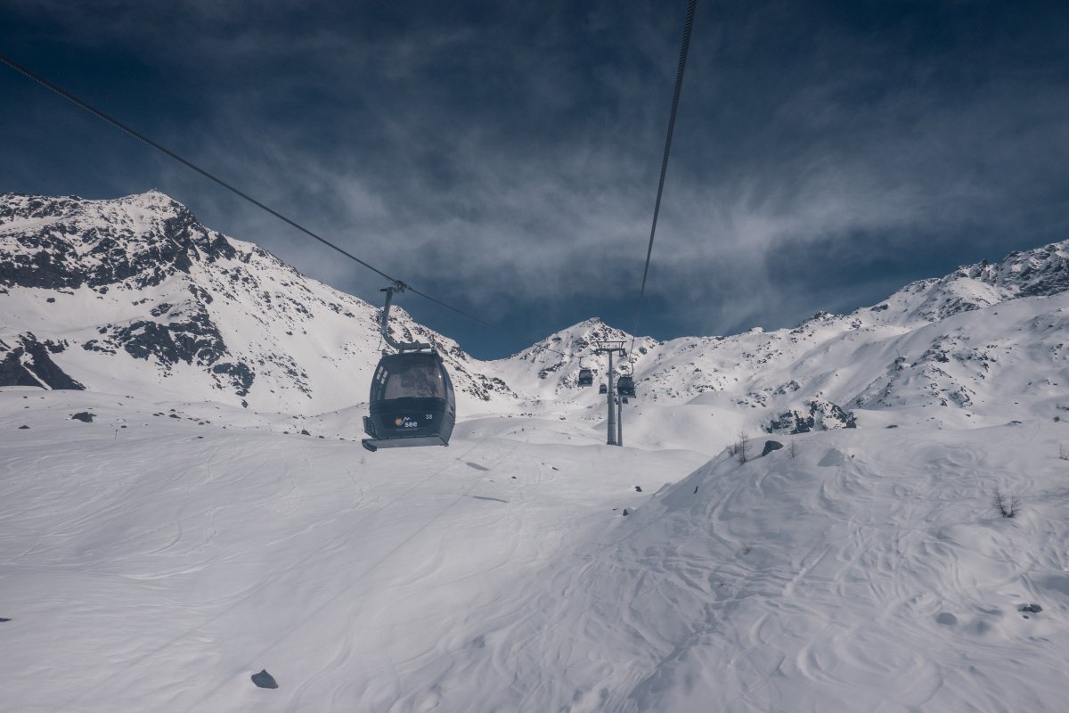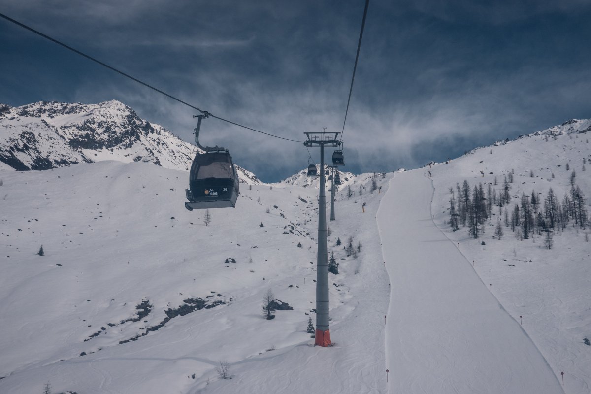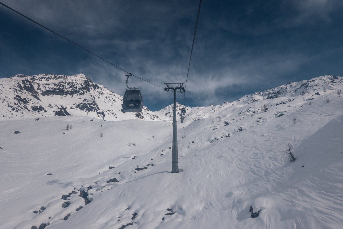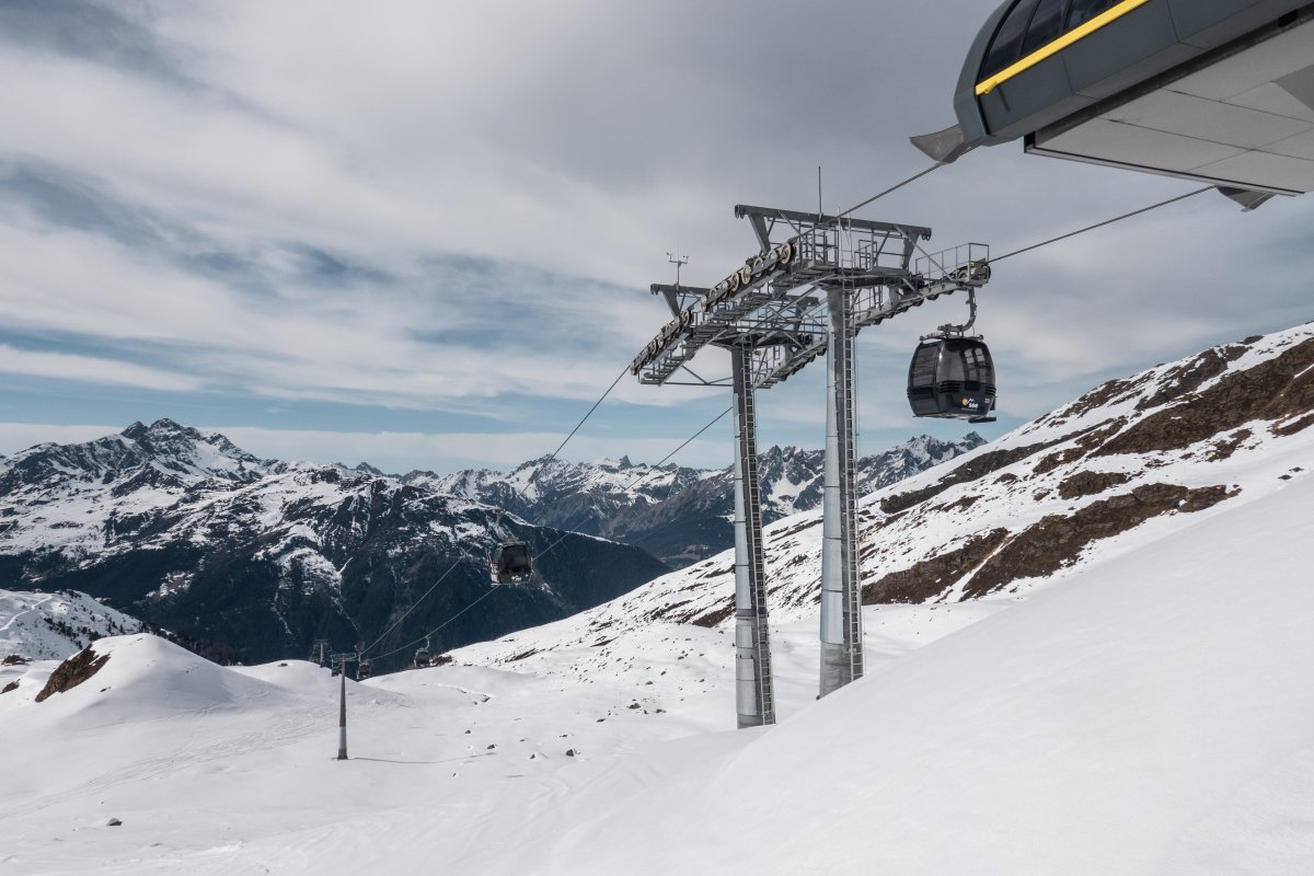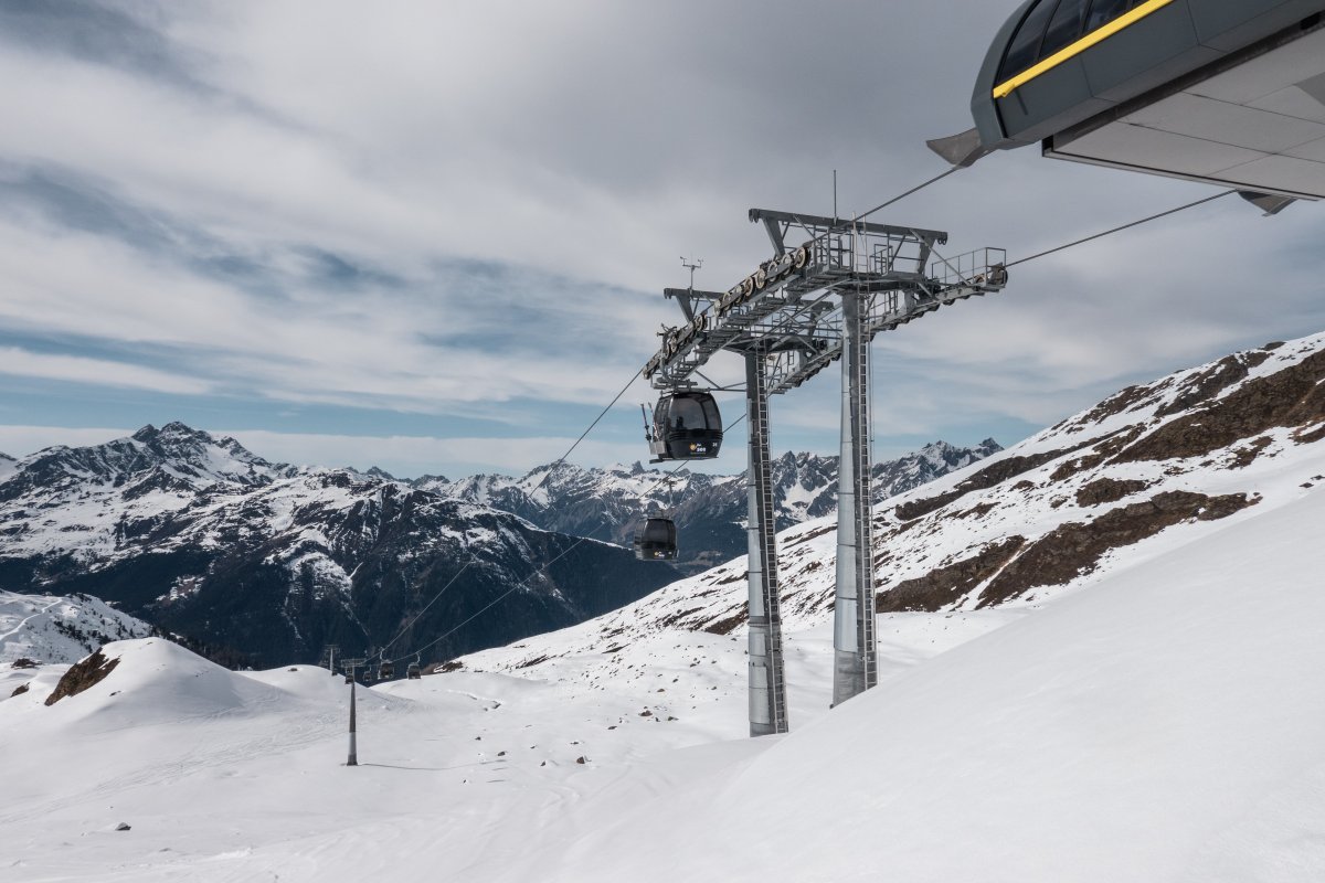 Abfahrt an der Kabinenbahn Versing, März 2025