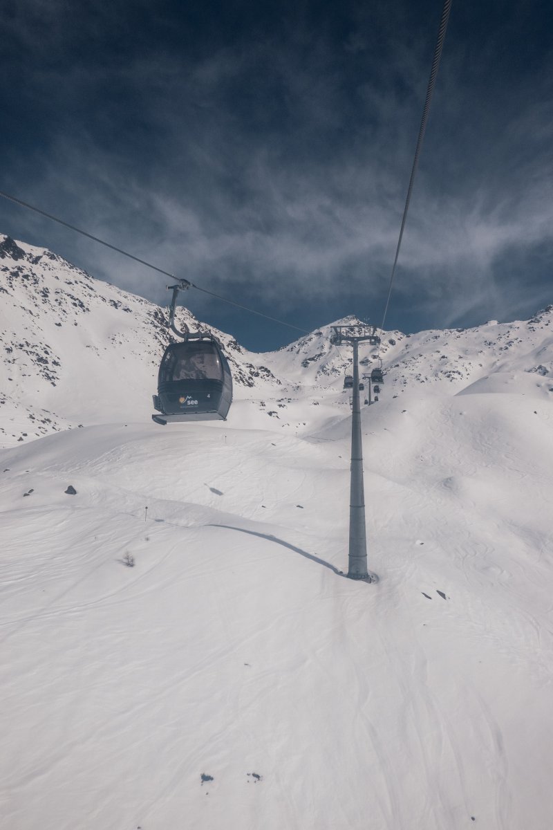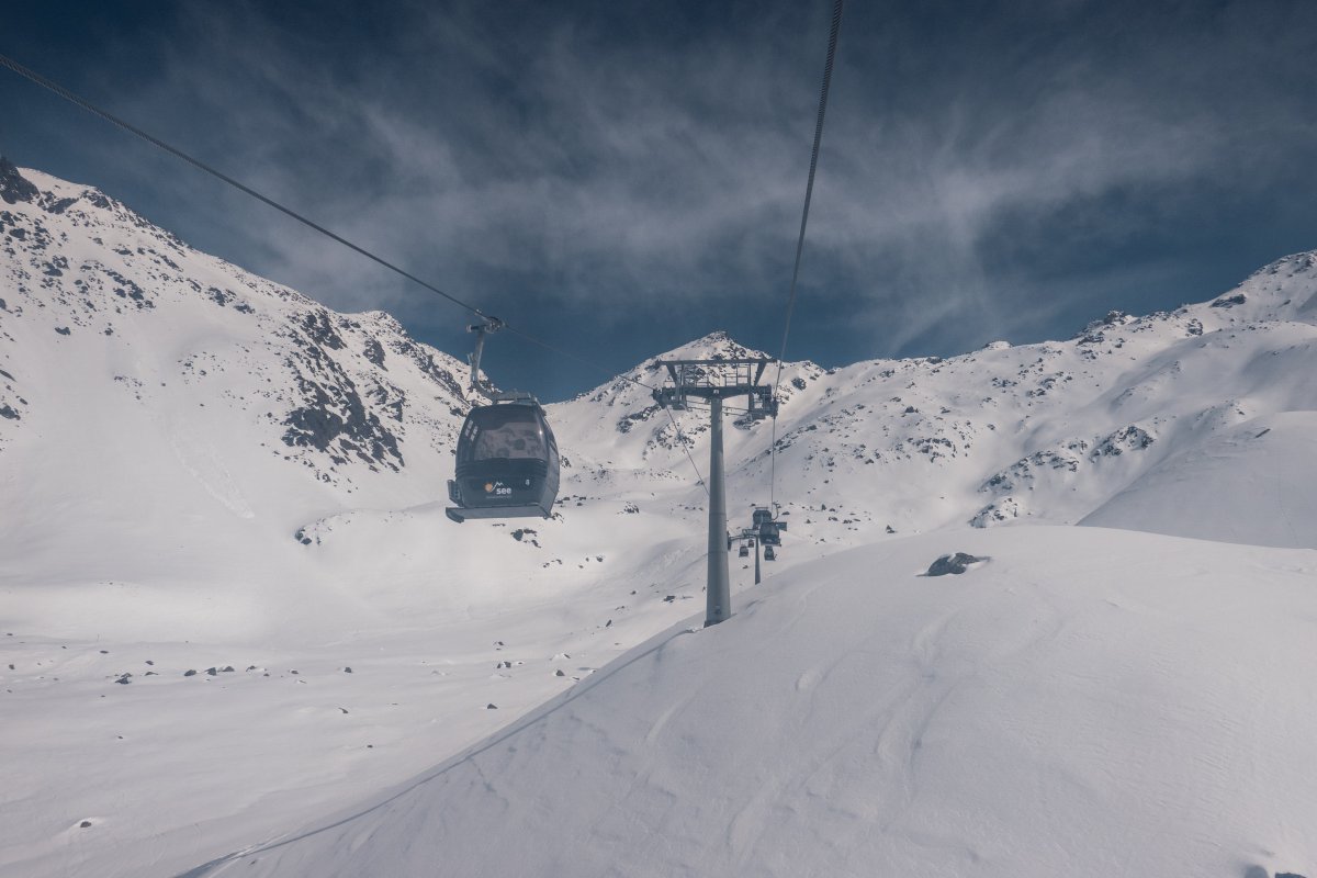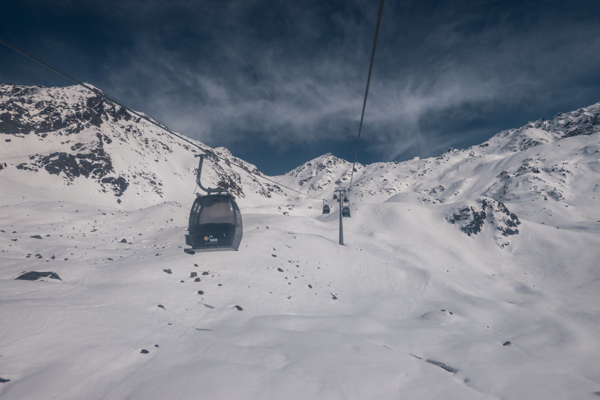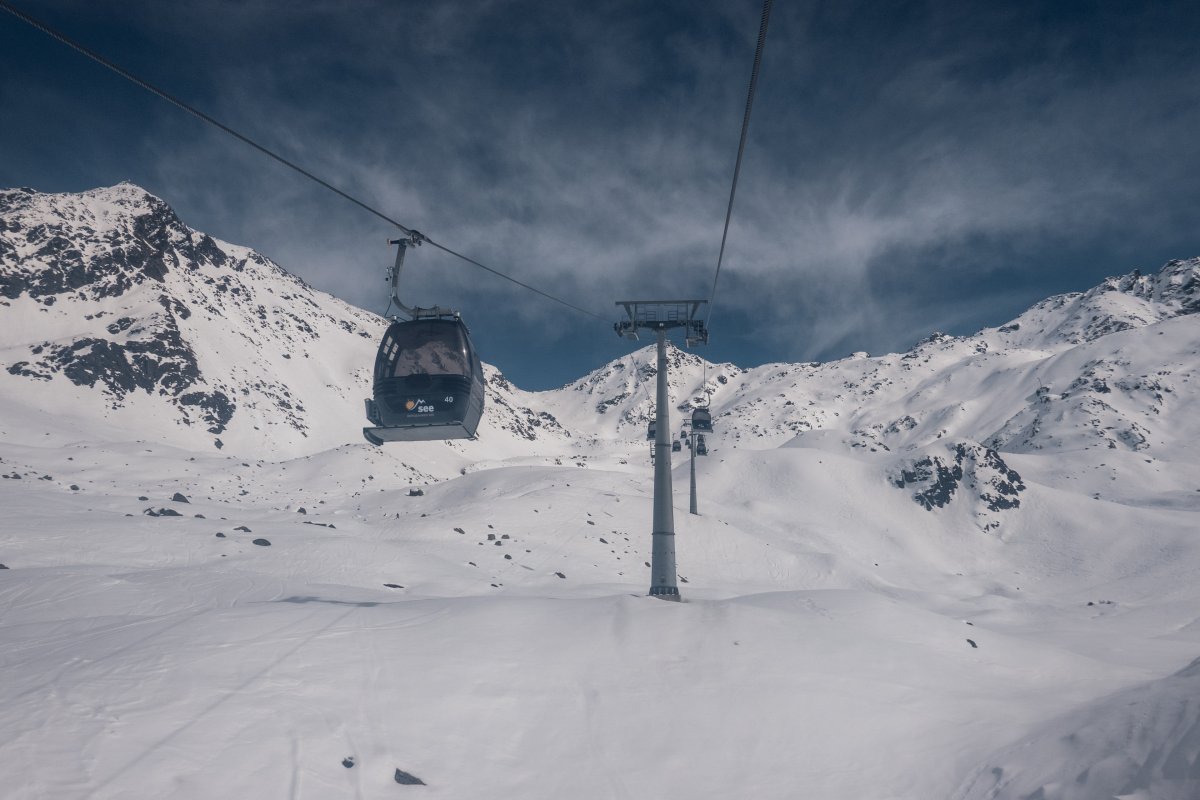 Abfahrt an der Kabinenbahn Versing, März 2025