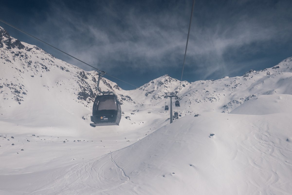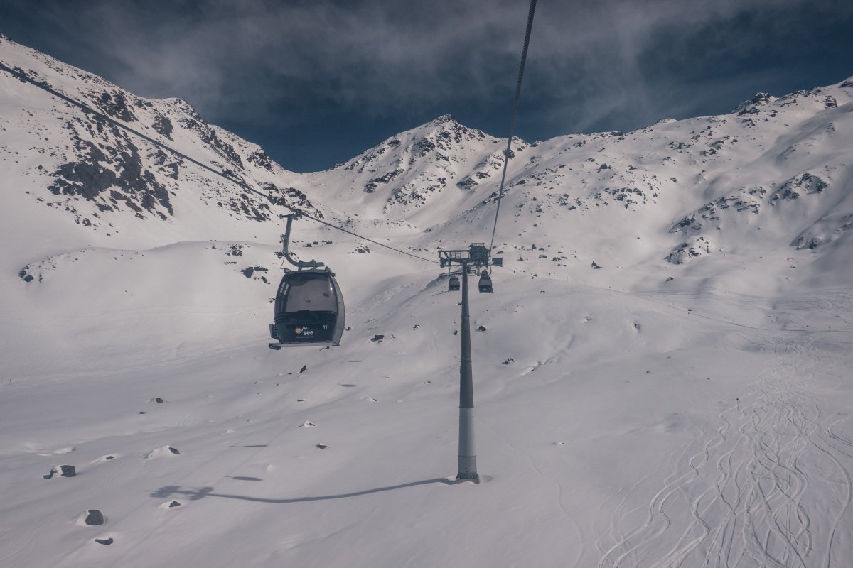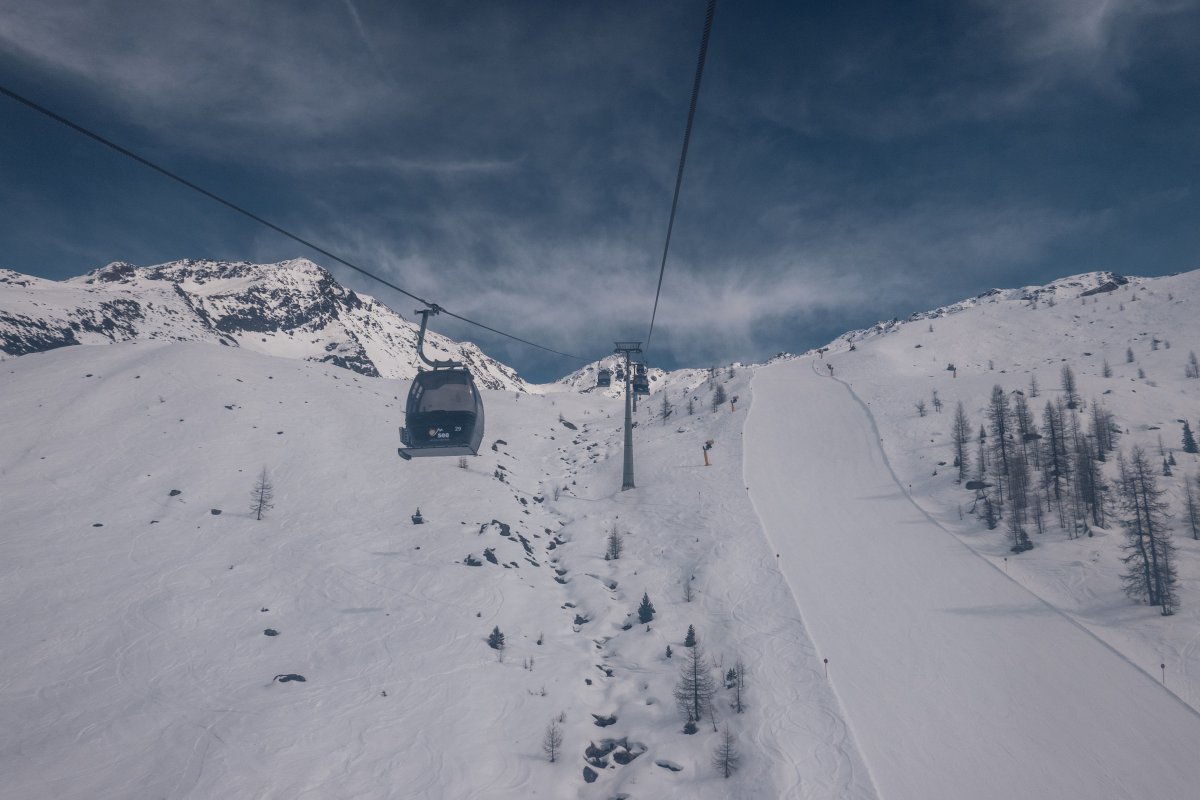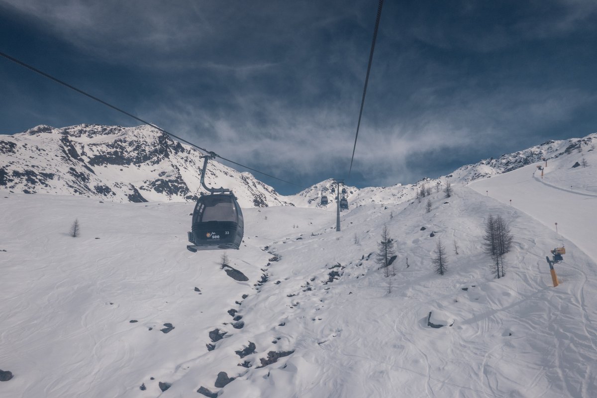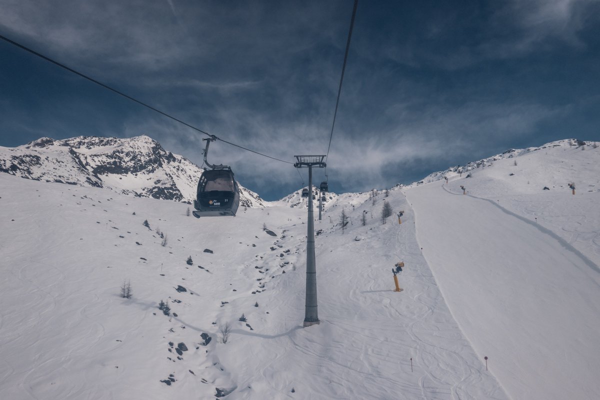 Abfahrt an der Kabinenbahn Versing, März 2025