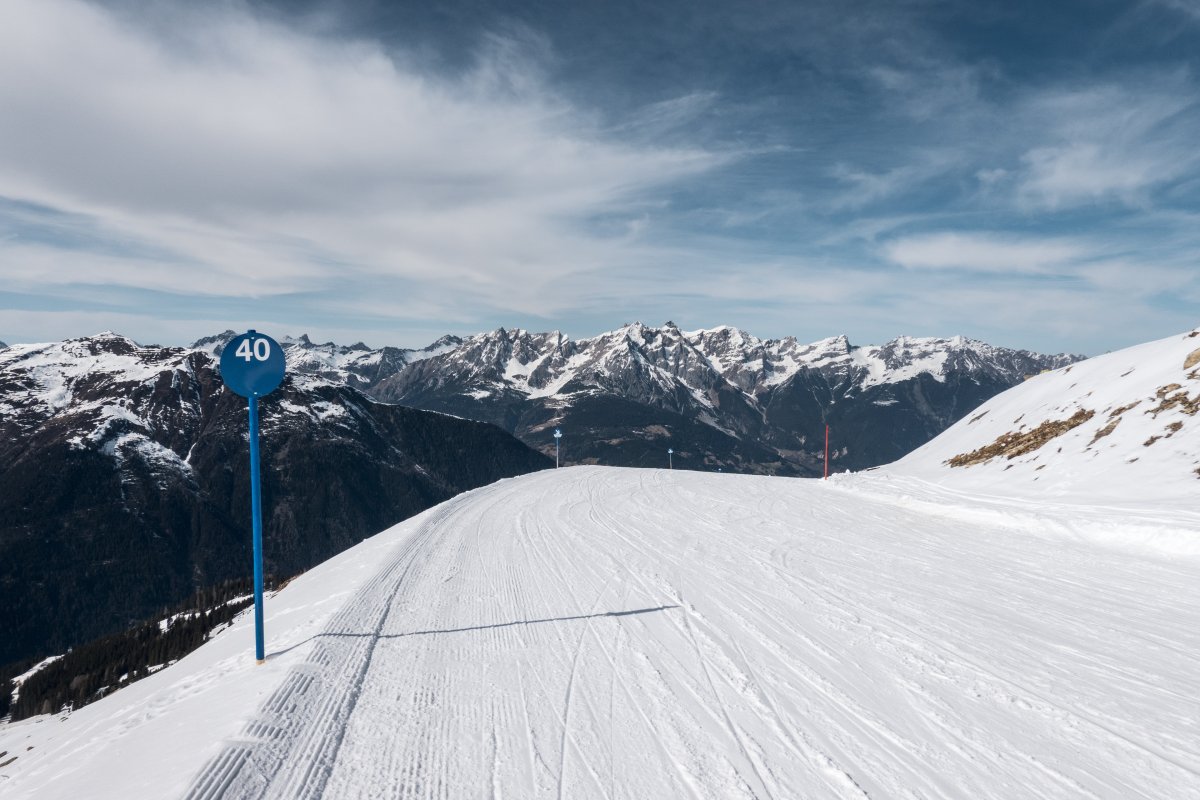 Abfahrt an der Kabinenbahn Furglerblick, März 2025