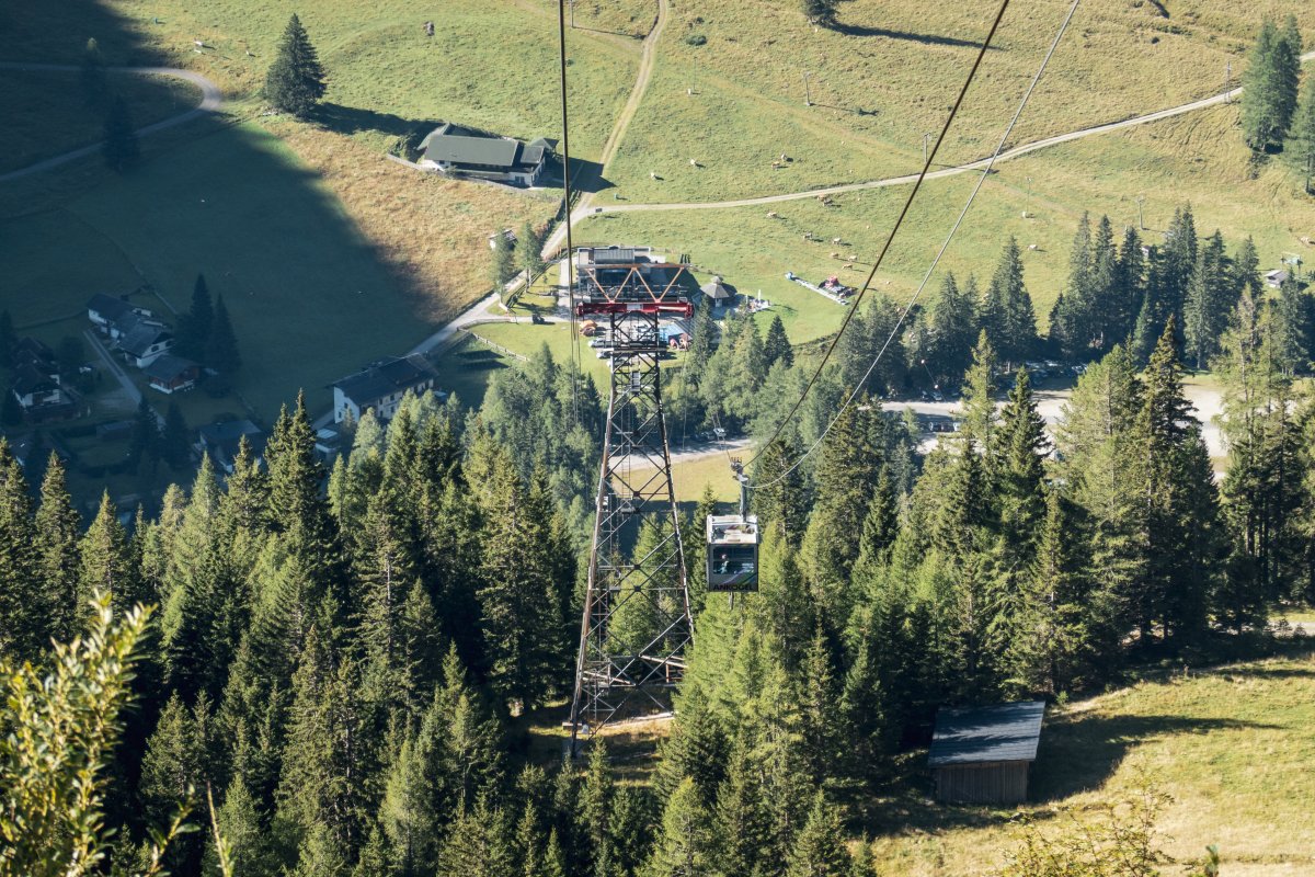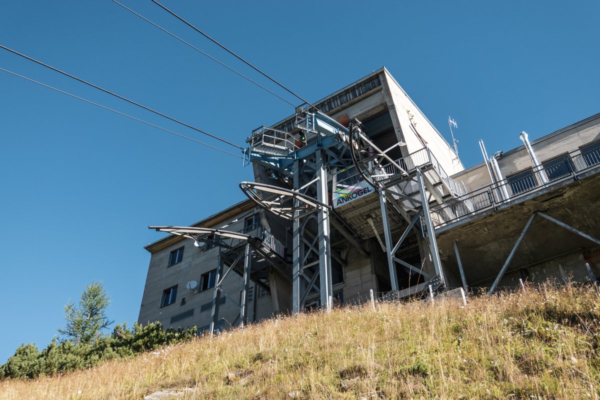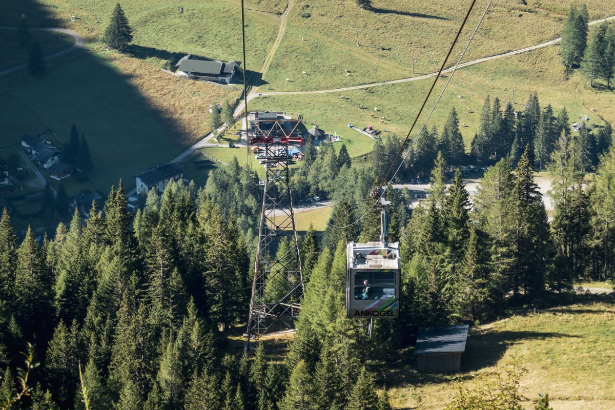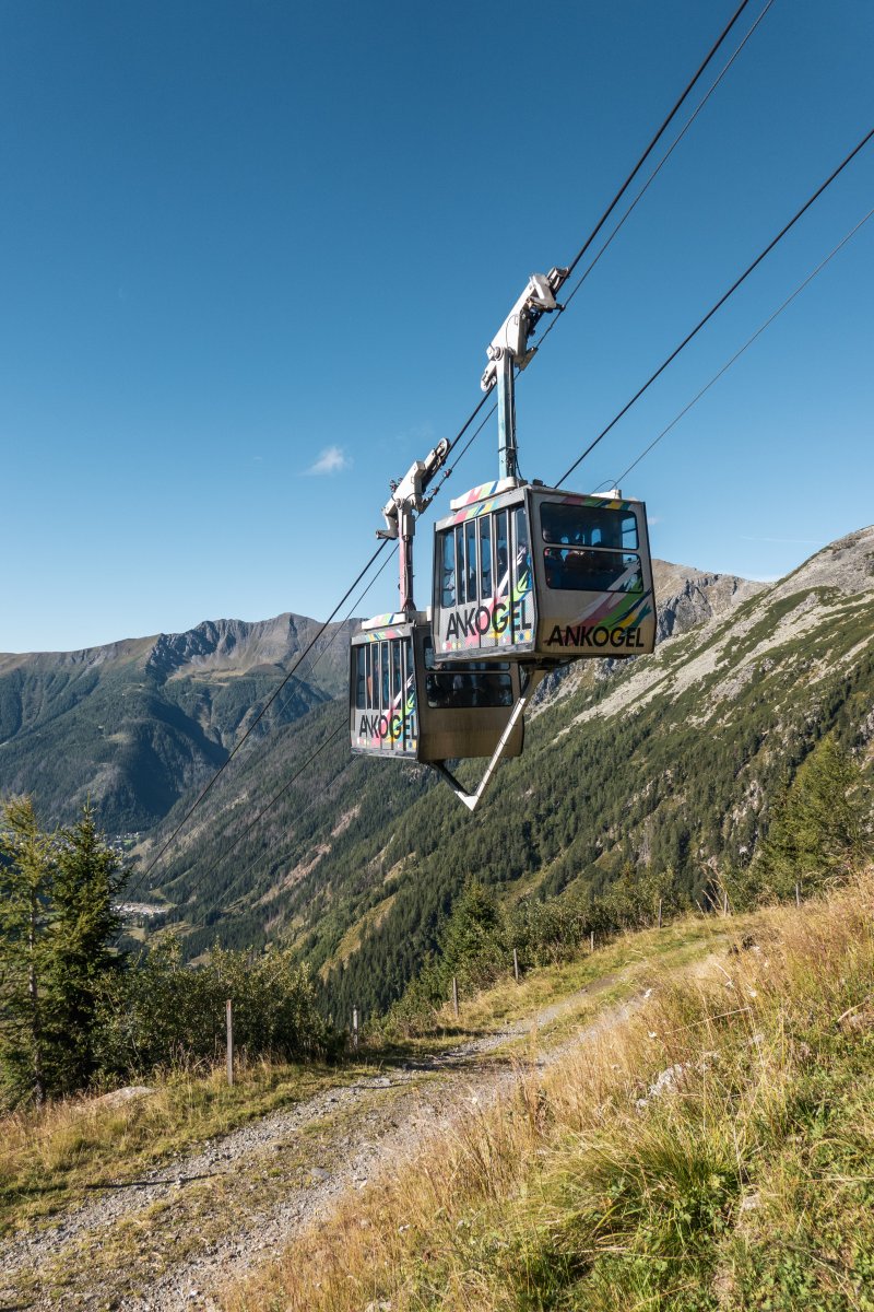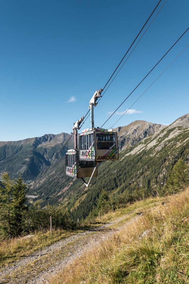 Zwei Sektionen einer technisch äusserst spannenden Gruppenpendelbahn von Waagner-Biró erschliessen oberhalb der Ortschaft Mallnitz ein Ski- und Wandergebiet am Fusse des 3252 Meter hohen Ankogel.
