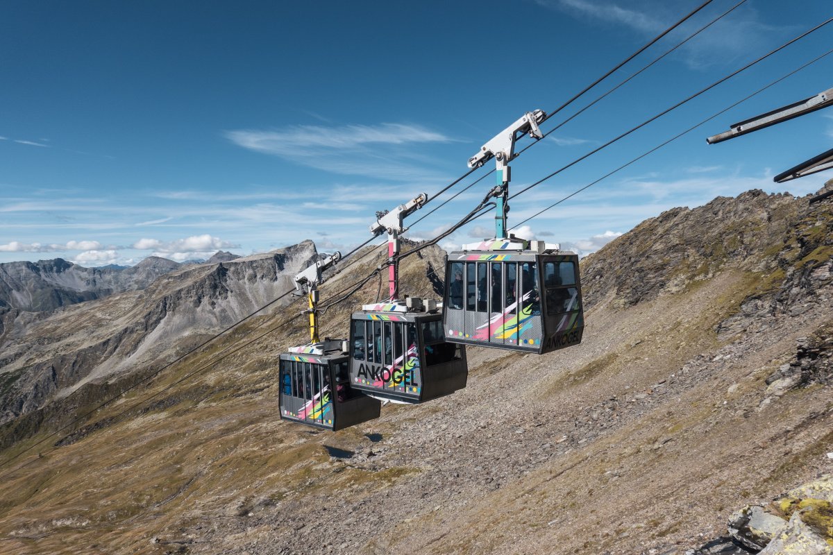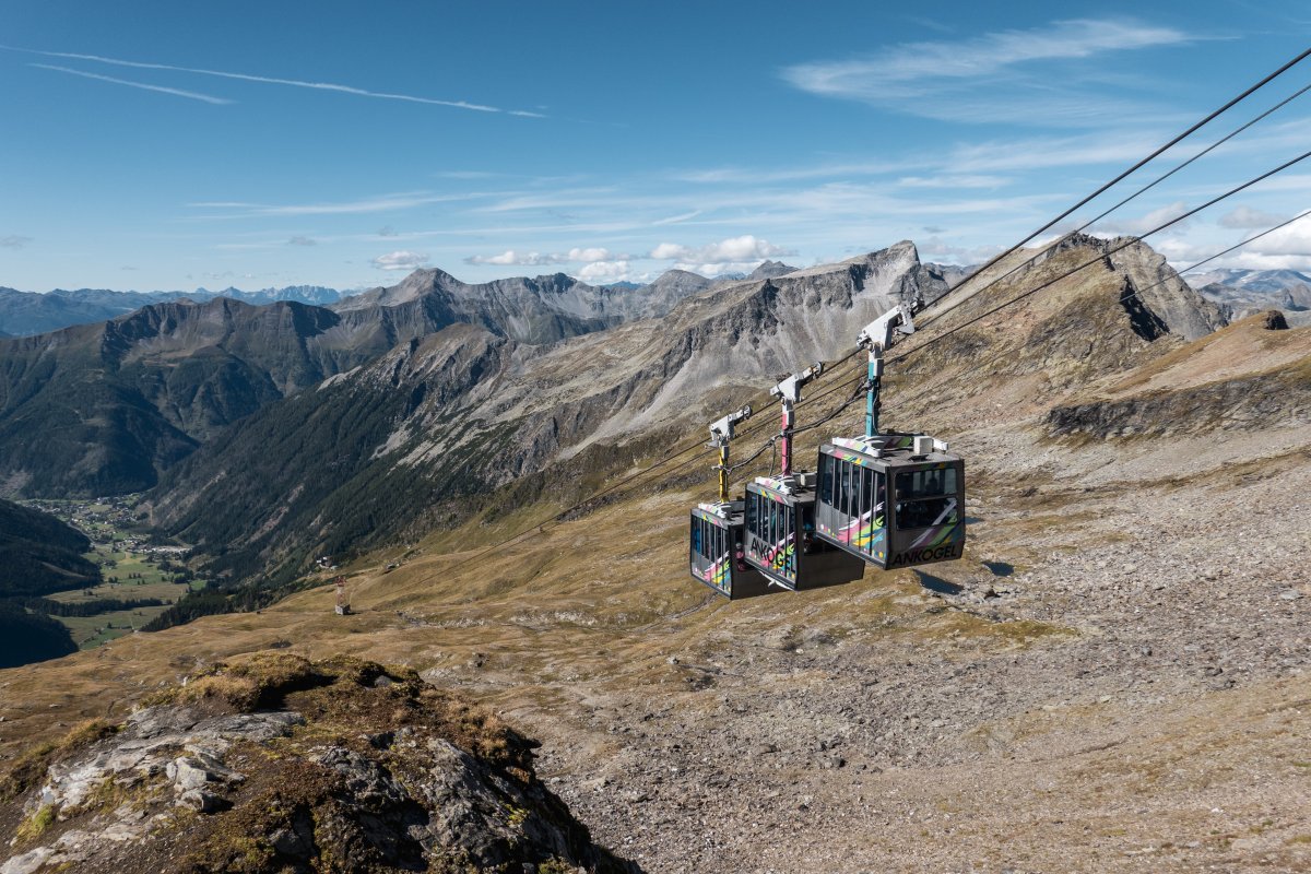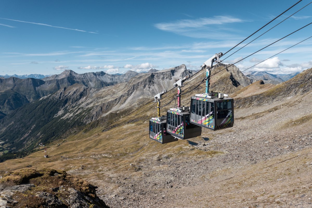 Zwei Sektionen einer technisch äusserst spannenden Gruppenpendelbahn von Waagner-Biró erschliessen oberhalb der Ortschaft Mallnitz ein Ski- und Wandergebiet am Fusse des 3252 Meter hohen Ankogel.
