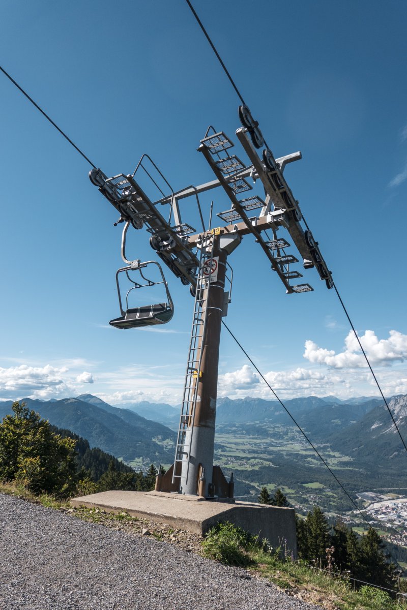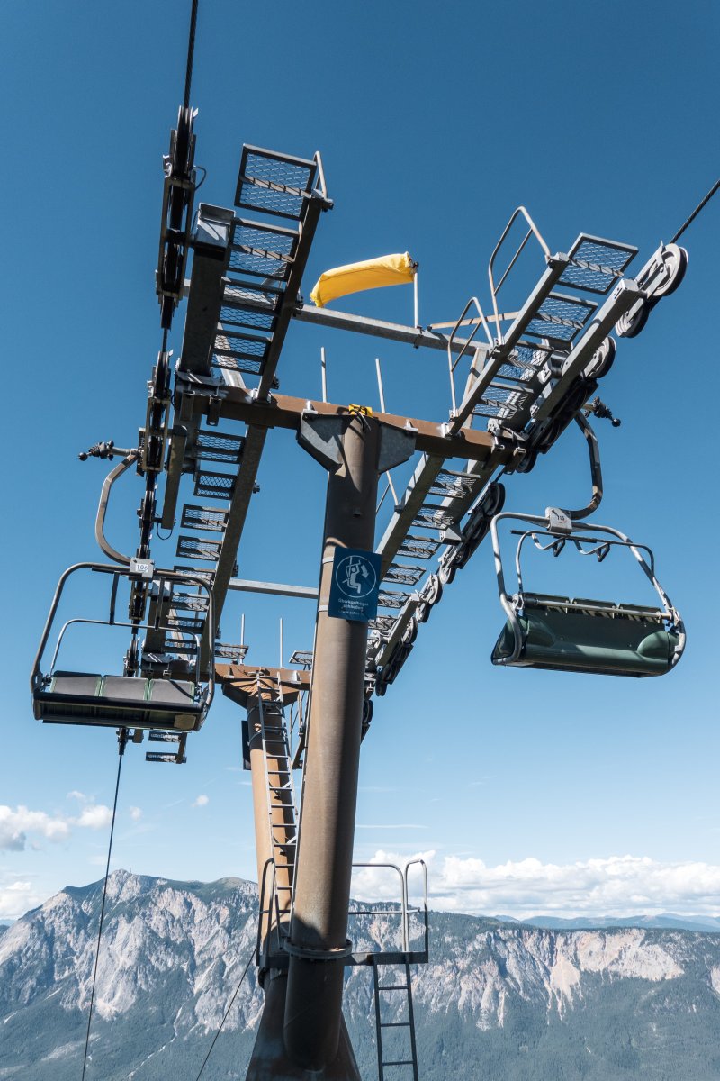 Die lange Sesselbahn zum Dreiländereck oberhalb von Arnoldstein zählt aus technisch-historischer Sicht zu den bedeutendsten in ganz Österreich. Erbaut von De Pretis und umgebaut von Girak ist sie bis heute ein echtes Unikat.