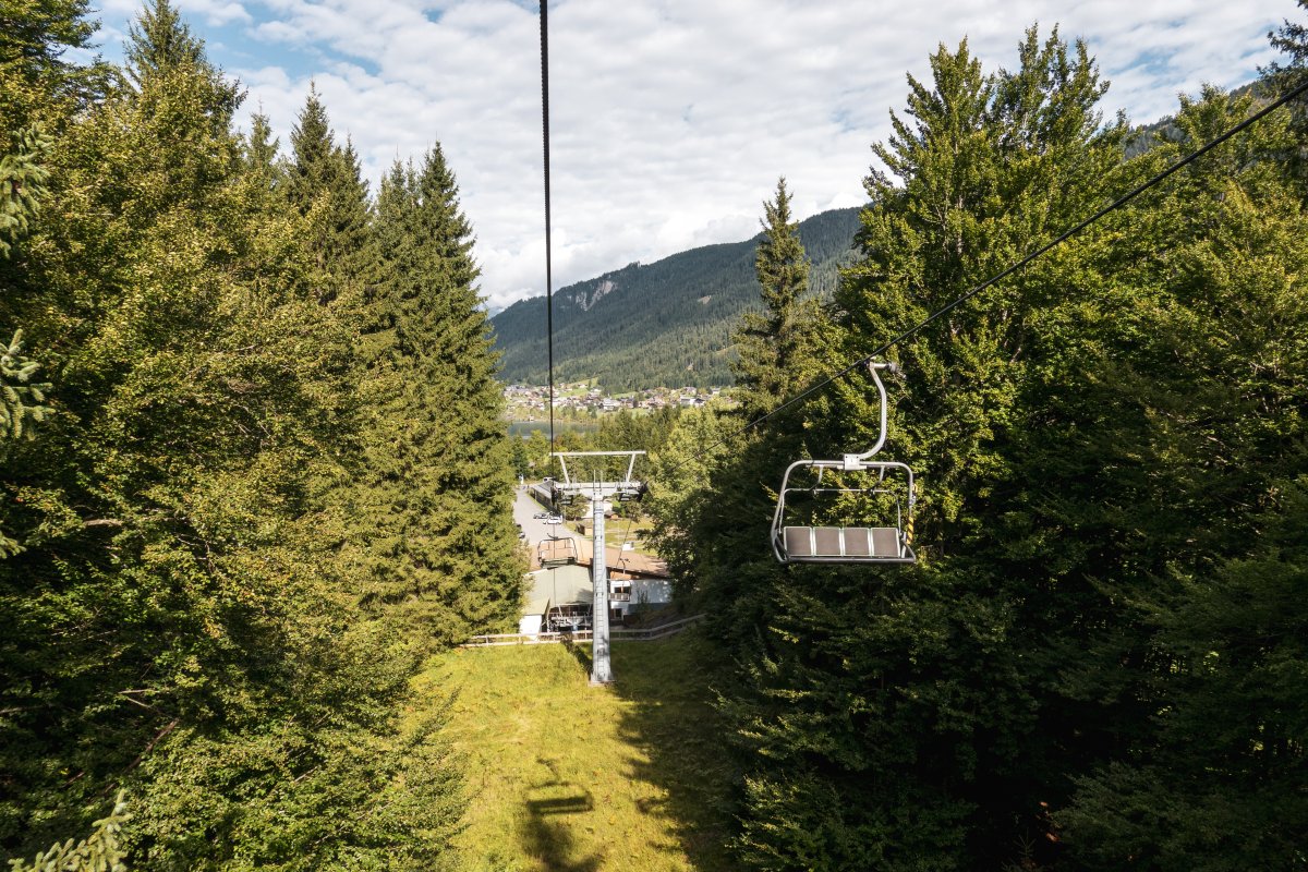 Der Weissensee am Fuss der Gailtaler Alpen zählt zu den bekanntesten Badeseen in Kärnten. Eine kuppelbare Sesselbahn von Girak erschliesst hier im Winter ein Skigebiet und im Sommer ein beliebtes Wanderareal.