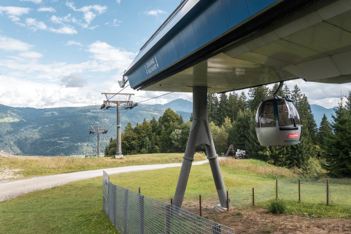 Mit über sechs Kilometern Gesamtlänge zählt der Millennium-Express am Nassfeld zu den beeindruckendsten Kabinenbahnen der Alpen. Die Anlage mit ihren drei Sektionen stammt aus dem Hause Doppelmayr.