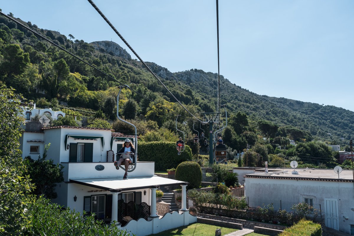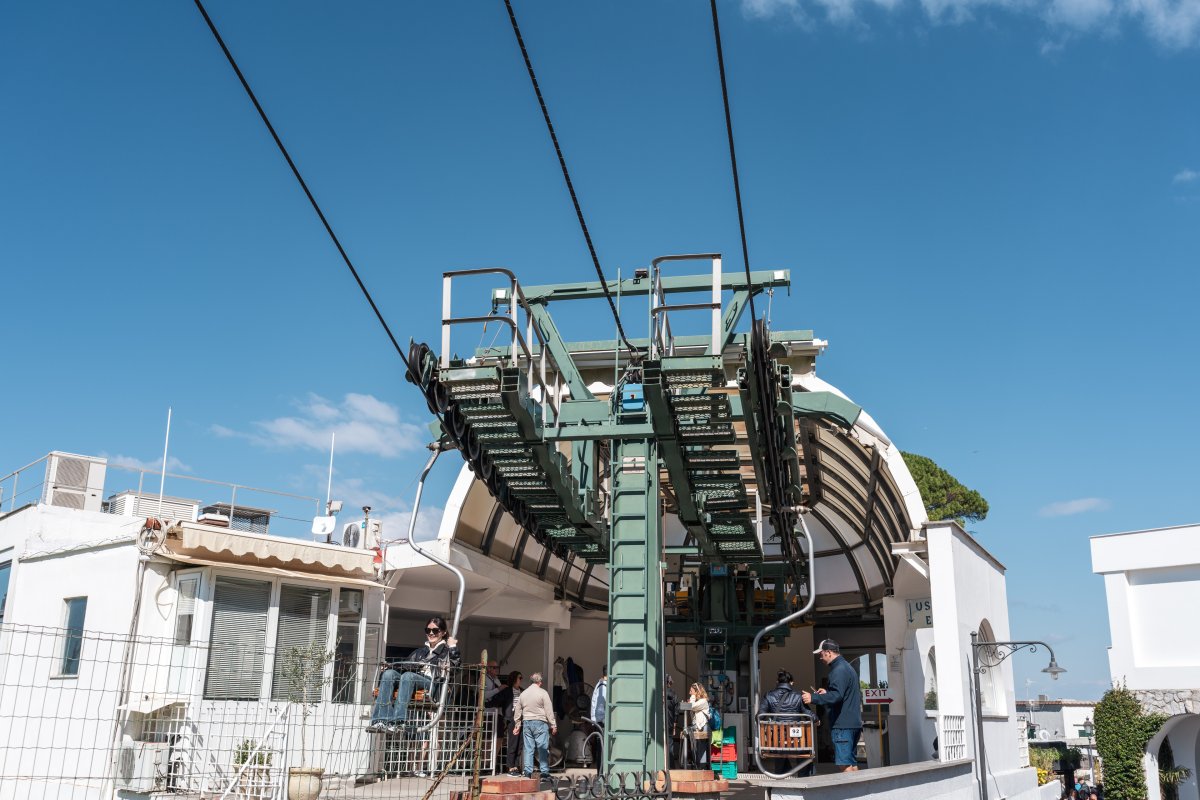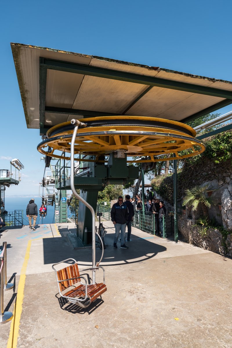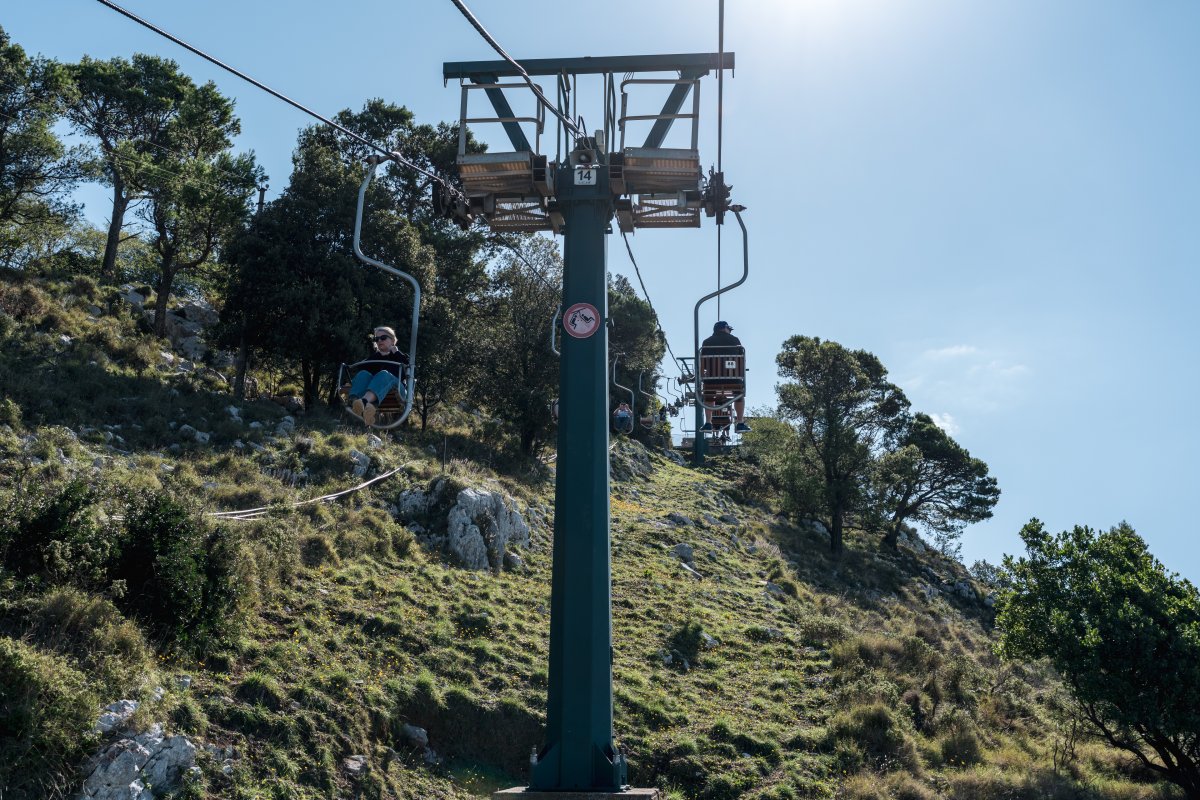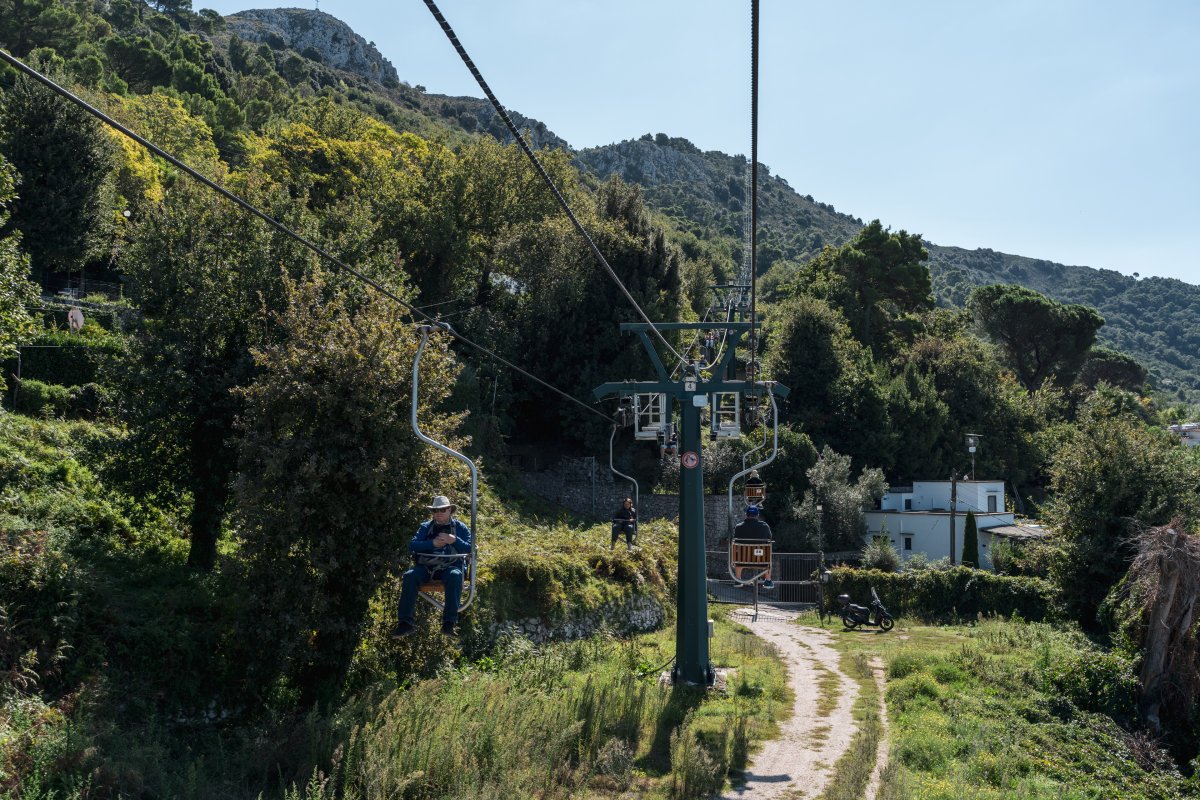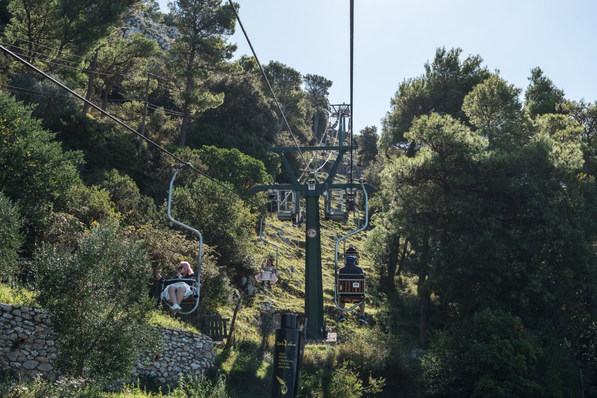 Eine Einersesselbahn von Leitner erschliesst am Golf von Neapel auf der Insel Capri den Monte Solaro mit Blick auf die Amalfiküste.