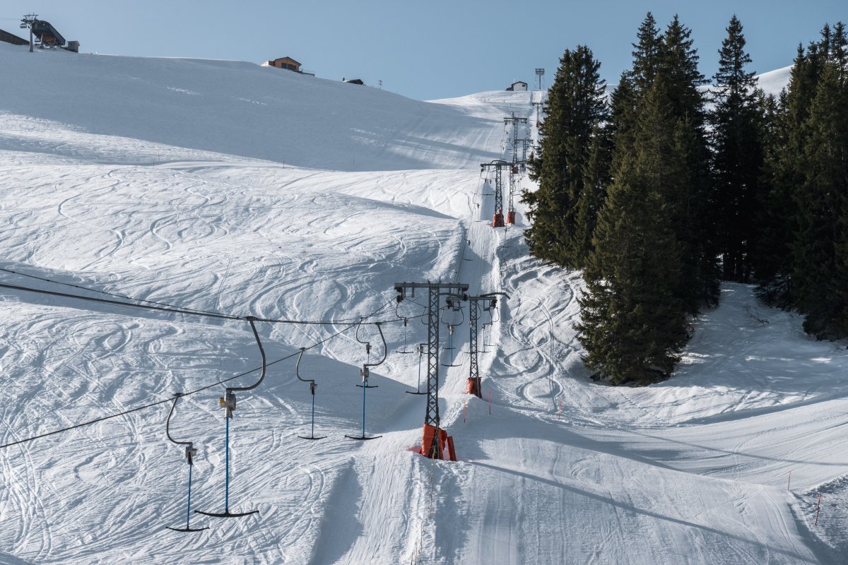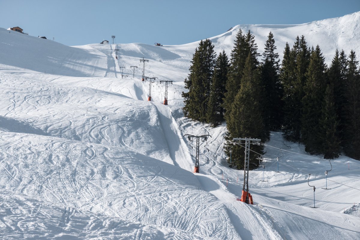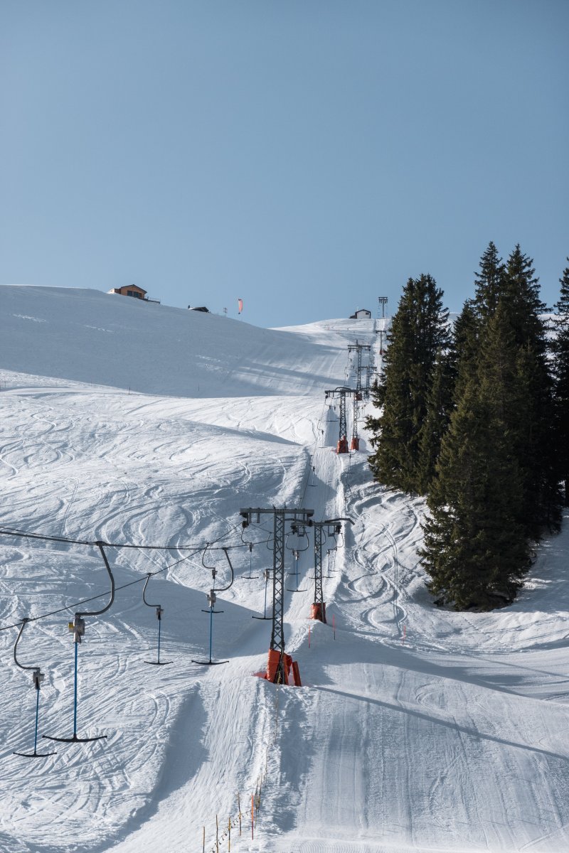 Abfahrt am Schlepplift Tschentenalp, März 2026