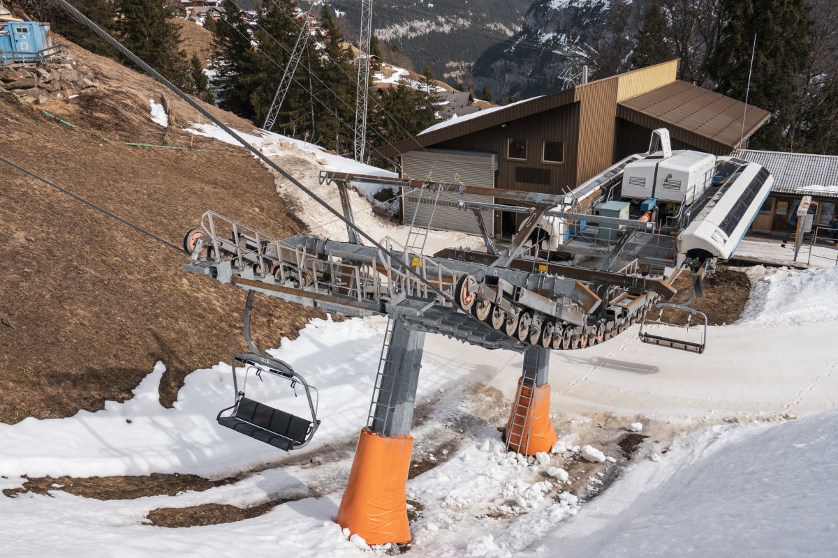 Talstation der Sesselbahn Mürren-Schiltgrat, März 2026